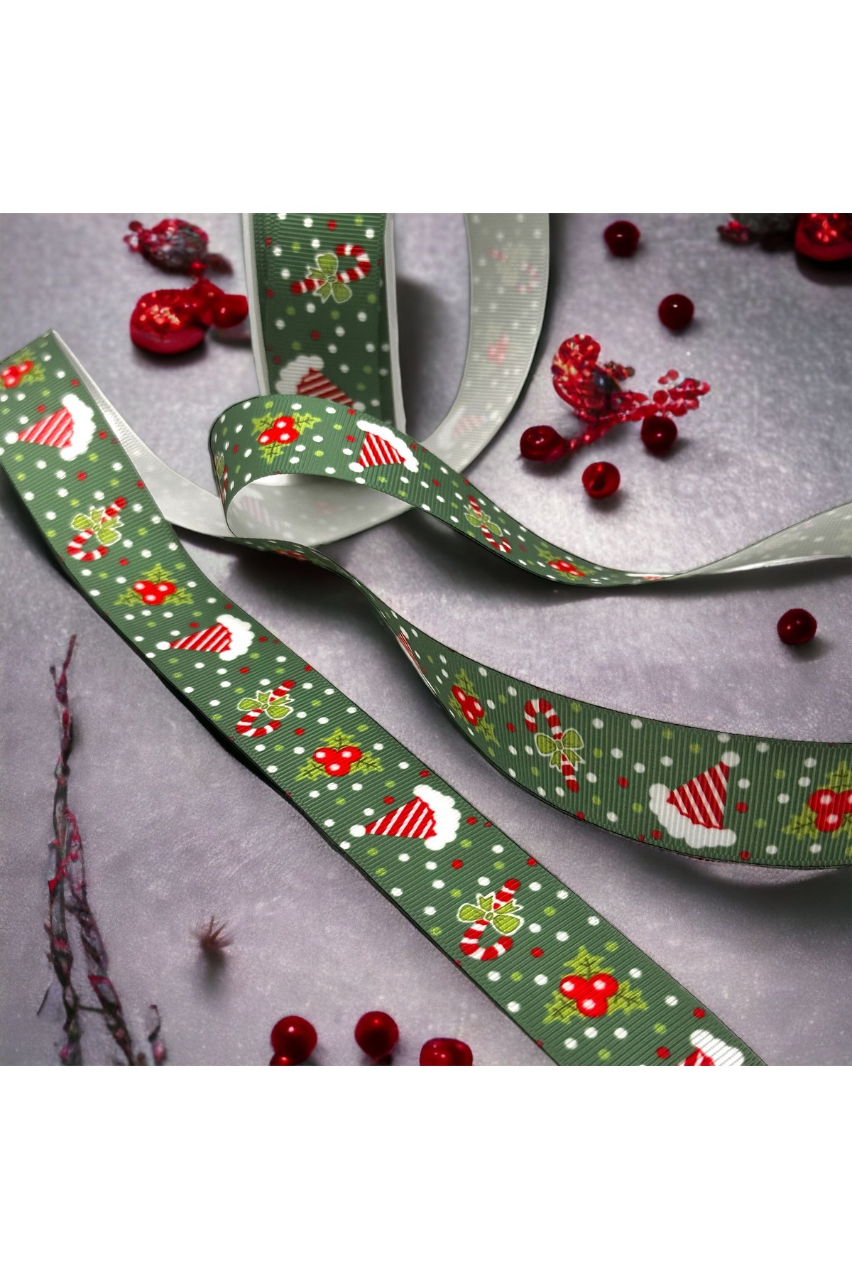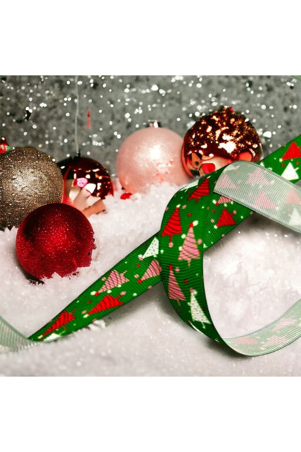 Yılbaşı Hediye Paketleme Kurdelesi Çam Ağacı Yılbaşı Kurdelesi Desenli Yılbaşı Kurdelesi 2 Metre
