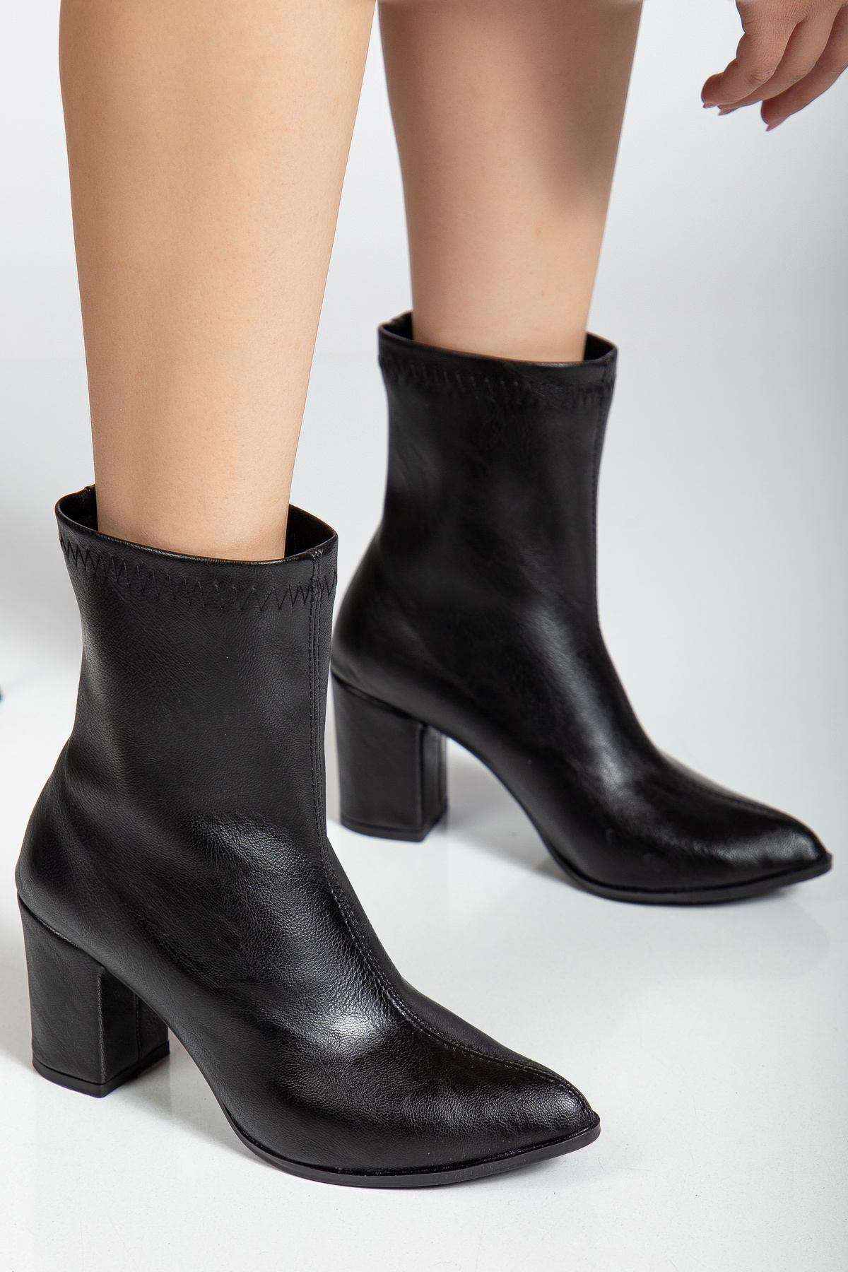 - Orta topuk yüksekliği (7 cm) ile gün boyu rahatlık sunan kalın topuklu bot.