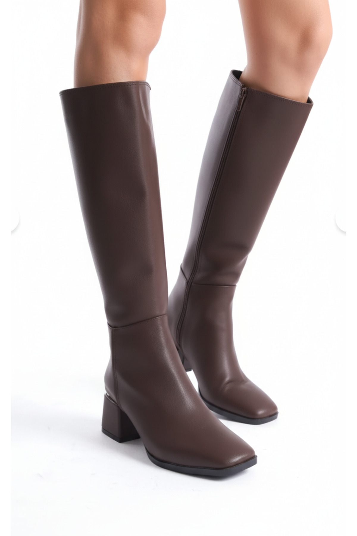 Topuklu Çizme Rengi Acı Kahvedir Çizme 1. Sınıf Cilt malzeme ile imal edilmiştir.