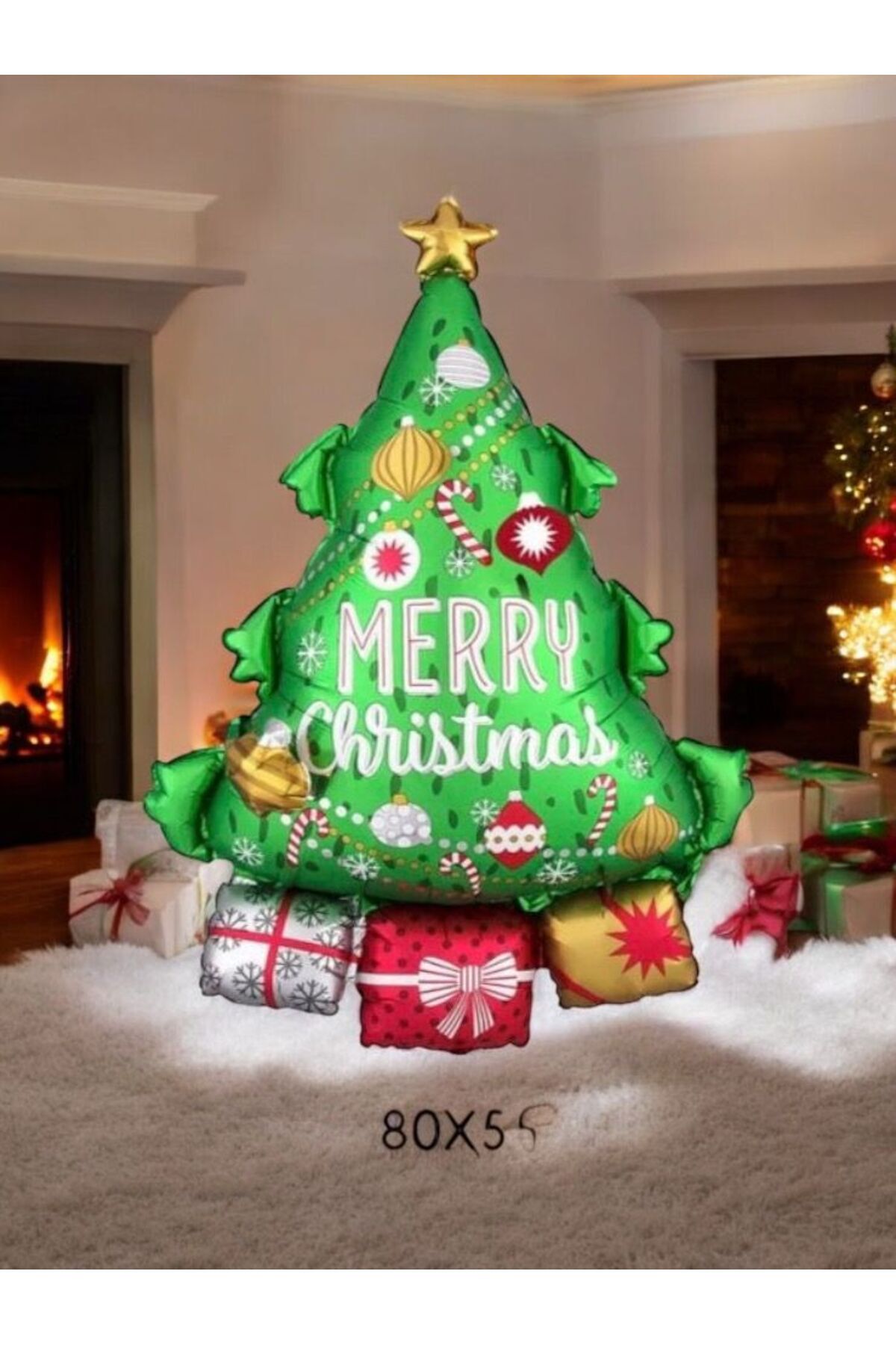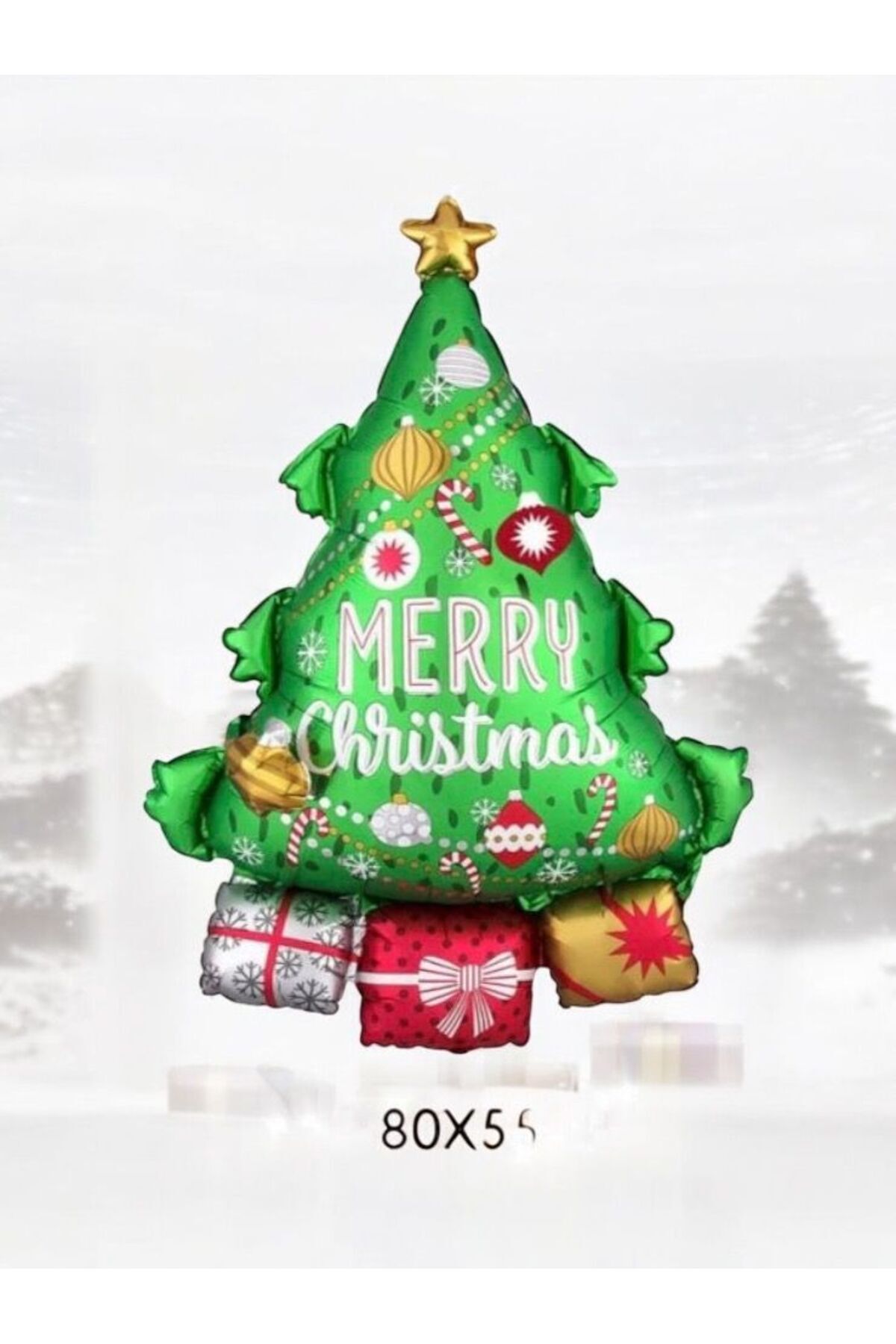 Yılbaşı Balonu Yılbaşı Ağacı Şeklinde Folyo Balon 80x55 cm Yılbaşı Balonları