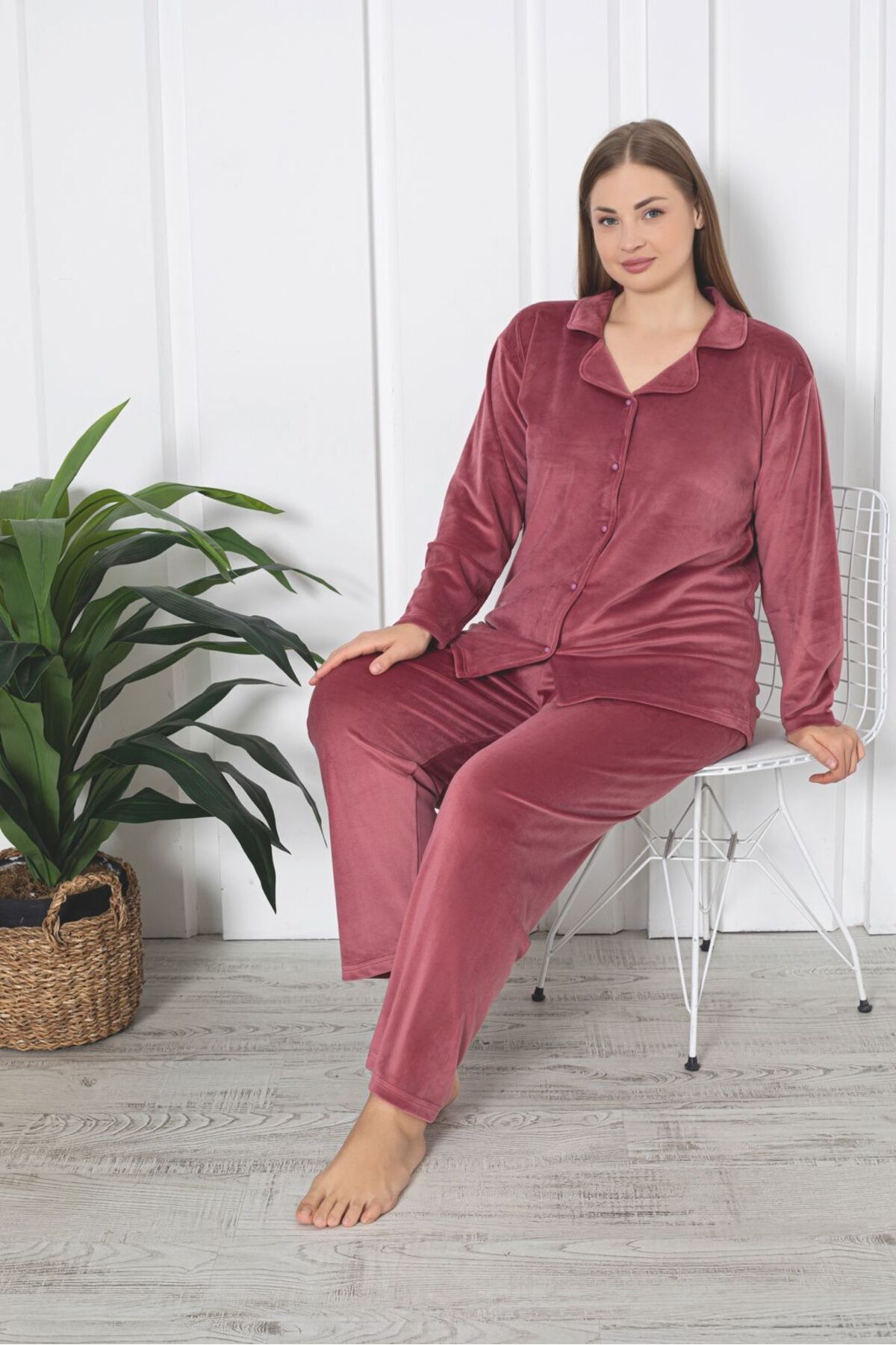 Manken ölçüleri Boy 176 cm Kilo 90 Göğüs 116 cm Bel 100 cm Kalça 126 cm Rahat kesimi ile büyük beden kadın pijama takımı, evde konforlu bir uyku deneyimi sunar.