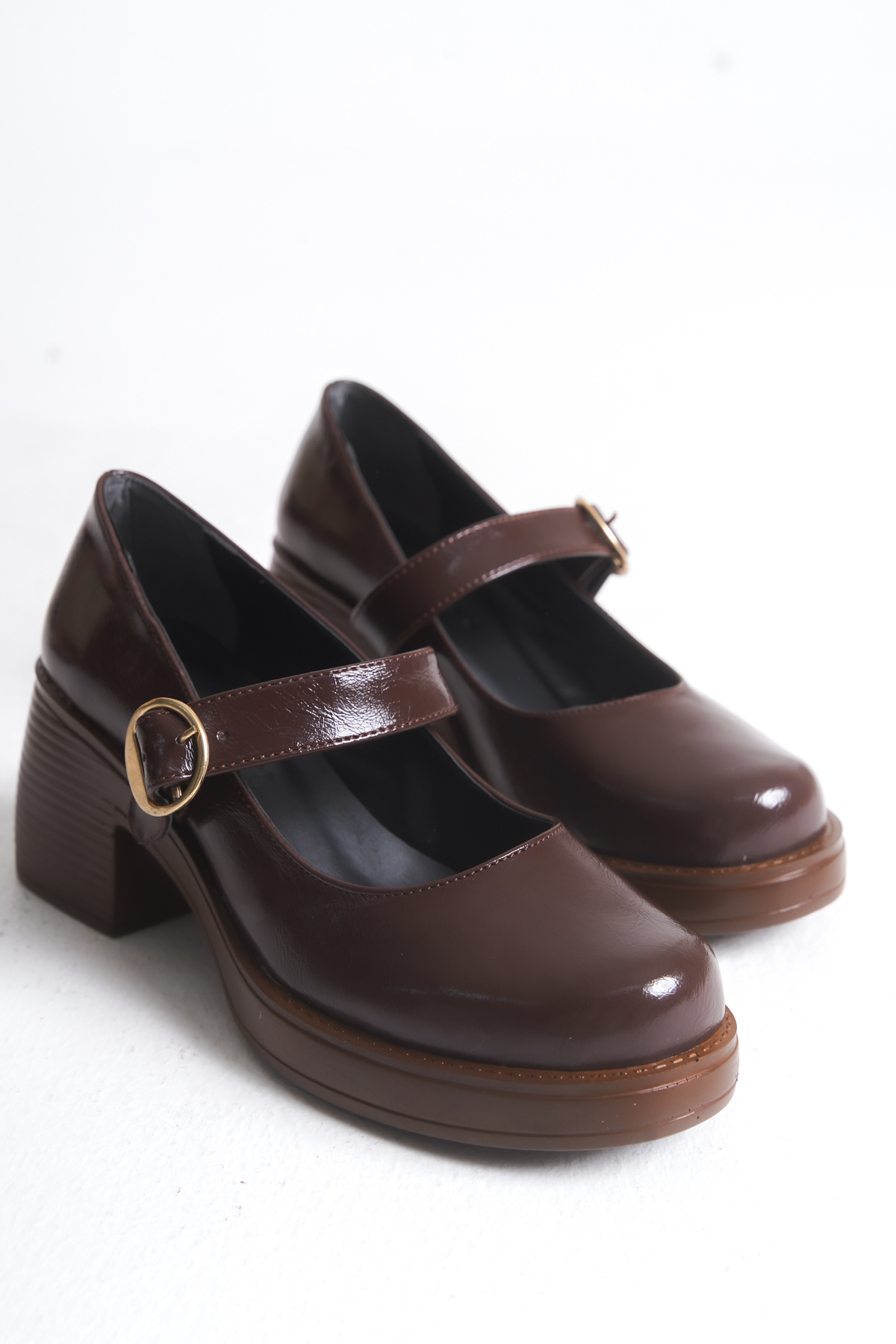 Kadın Özel Tasarım Platform Topuklu Zarif Tokalı Bantlı Balerin Loafer Makosen Ayakkabı