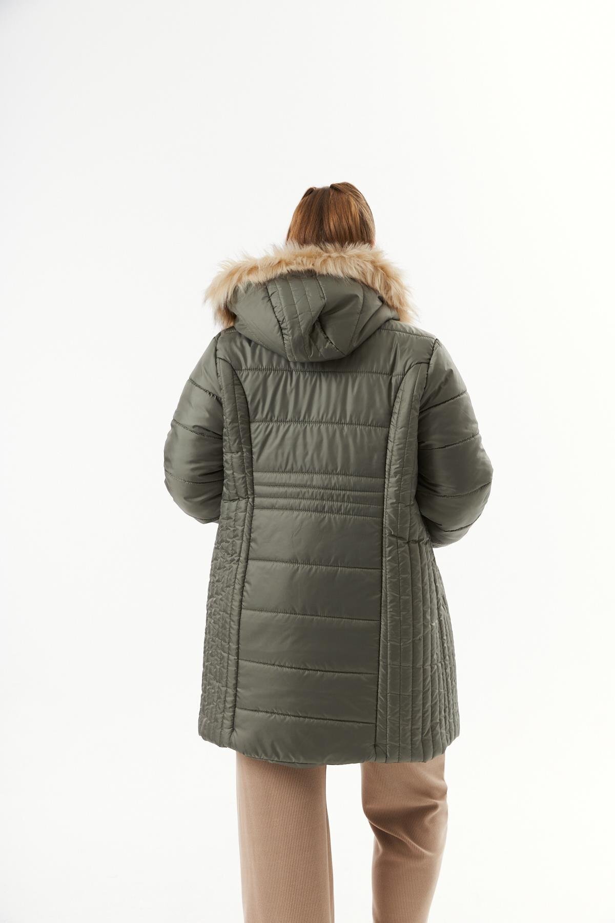 Büyük Beden Kapüşonlu Şişme Mont Çağla Yeşili
