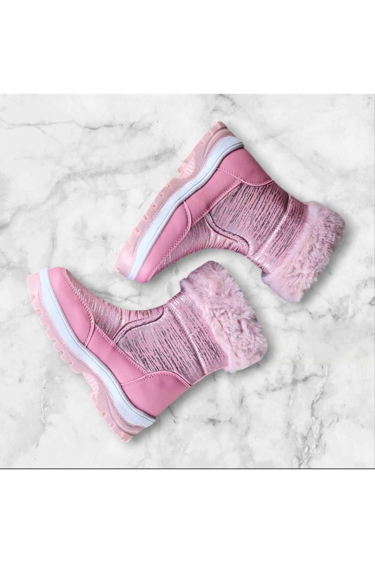 çocuk içi kürklü hafif su geçirmez fermuarlı kar botu çizme