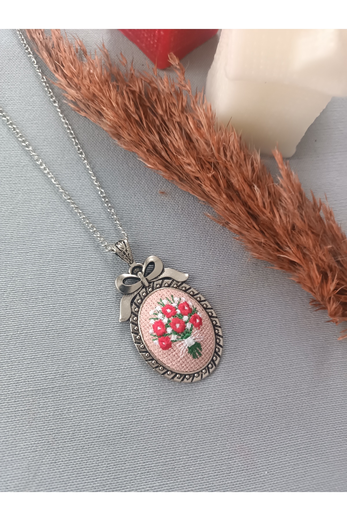 Tarzınıza sıcak, el emeği bir dokunuş katın! Geleneksel kanaviçe işçiliği ile hazırlanan bu özel tasarım kolye, otantik ve zarif stilinizi ön plana çıkarır.