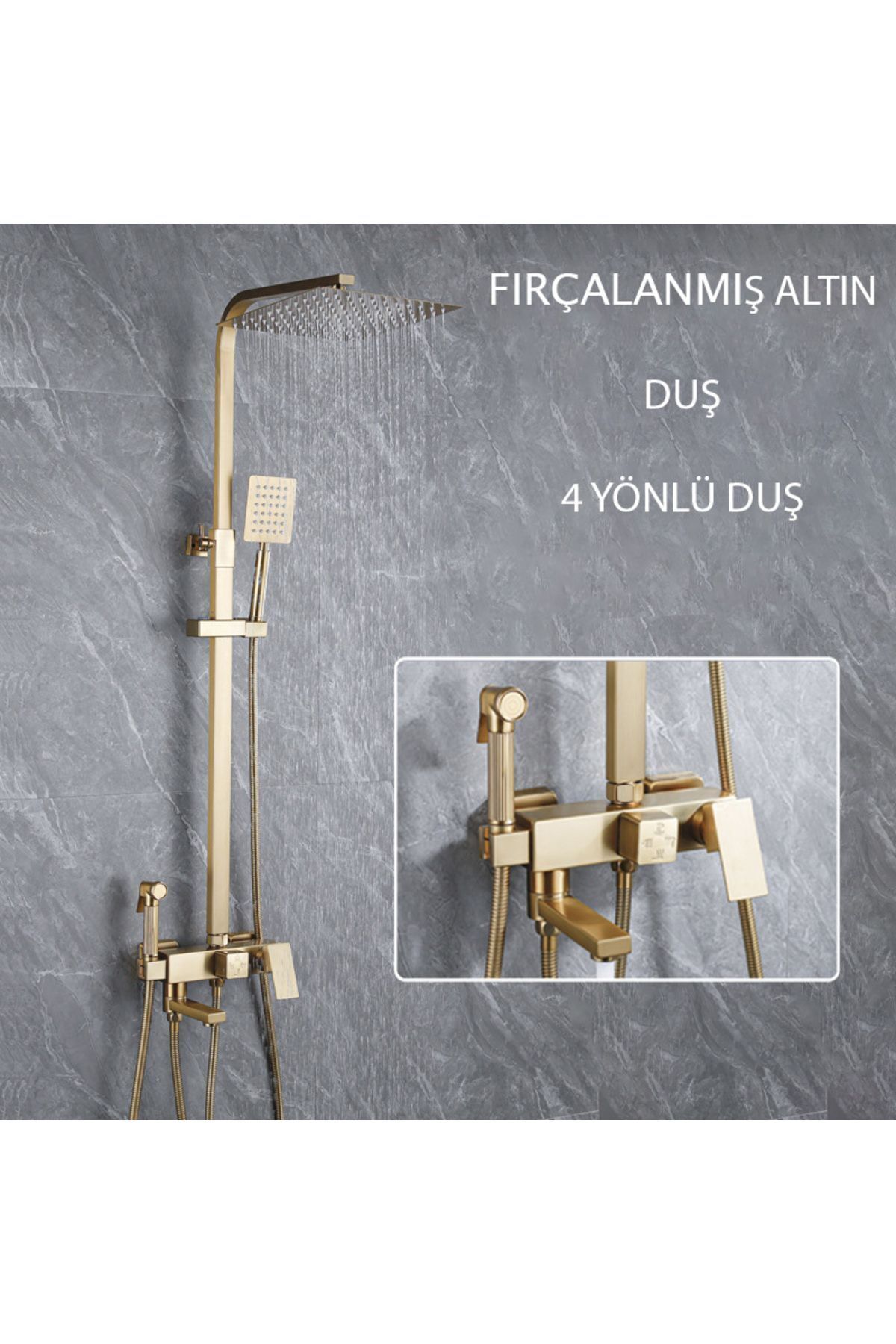 Gold Duş Seti Robot Yağmurlama Tepe Duş Seti 30x30cm Büyük Tepe Duş Başlığı 4'lü Banyo Seti