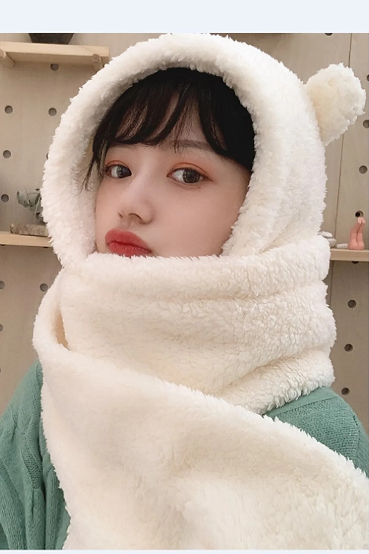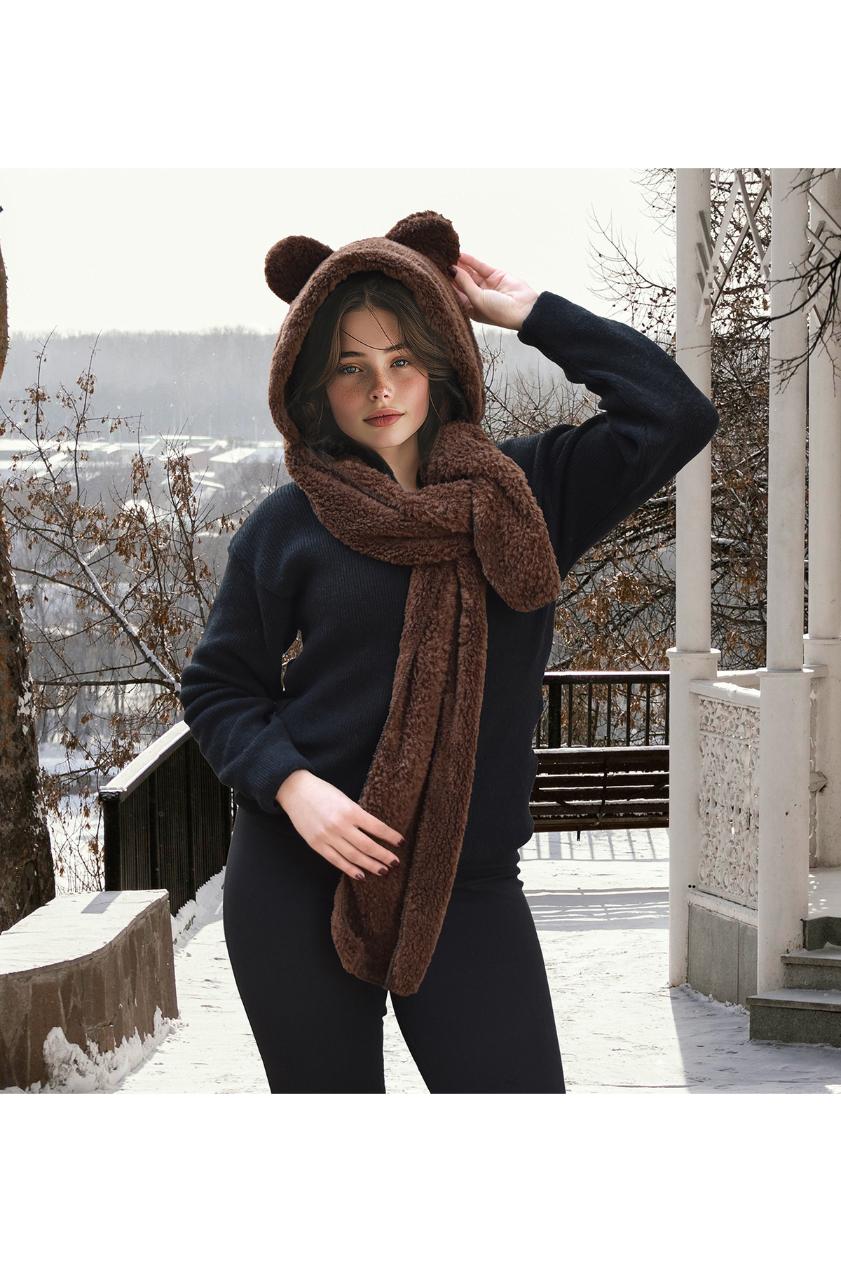 • Bu kış, tarzınızı ve konforunuzu bir araya getiren kapüşonlu peluş bere atkı ile tanışın! Özel olarak tasarlanan kadın welsoft polar boyunluk şalı, yumuşak dokusu ve rüzgar geçirmez kulaklı şapkası ile soğuk günlerde sizi sıcak tutar.