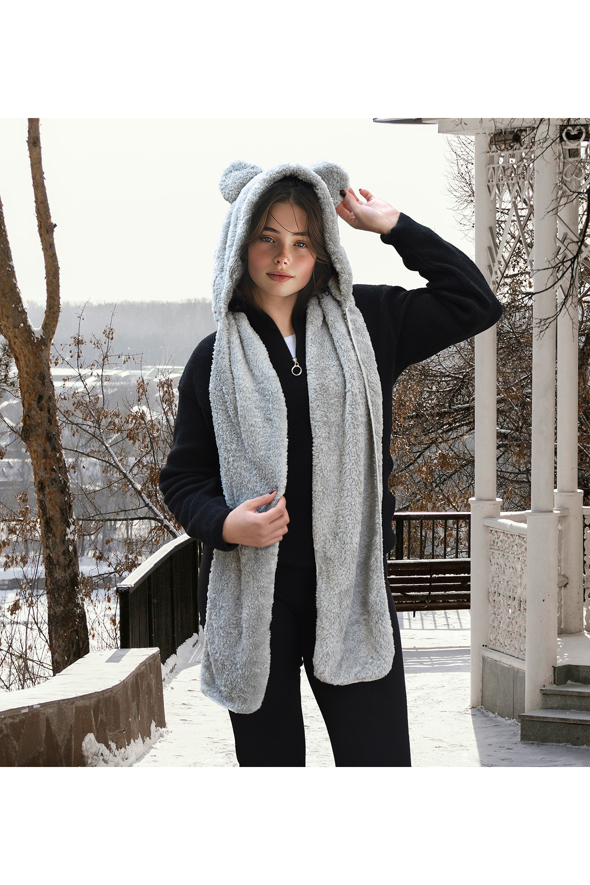 Paptex Kapüşonlu Peluş Bere Atkı Welsoft Yumuşak Kumaş Sıcacık