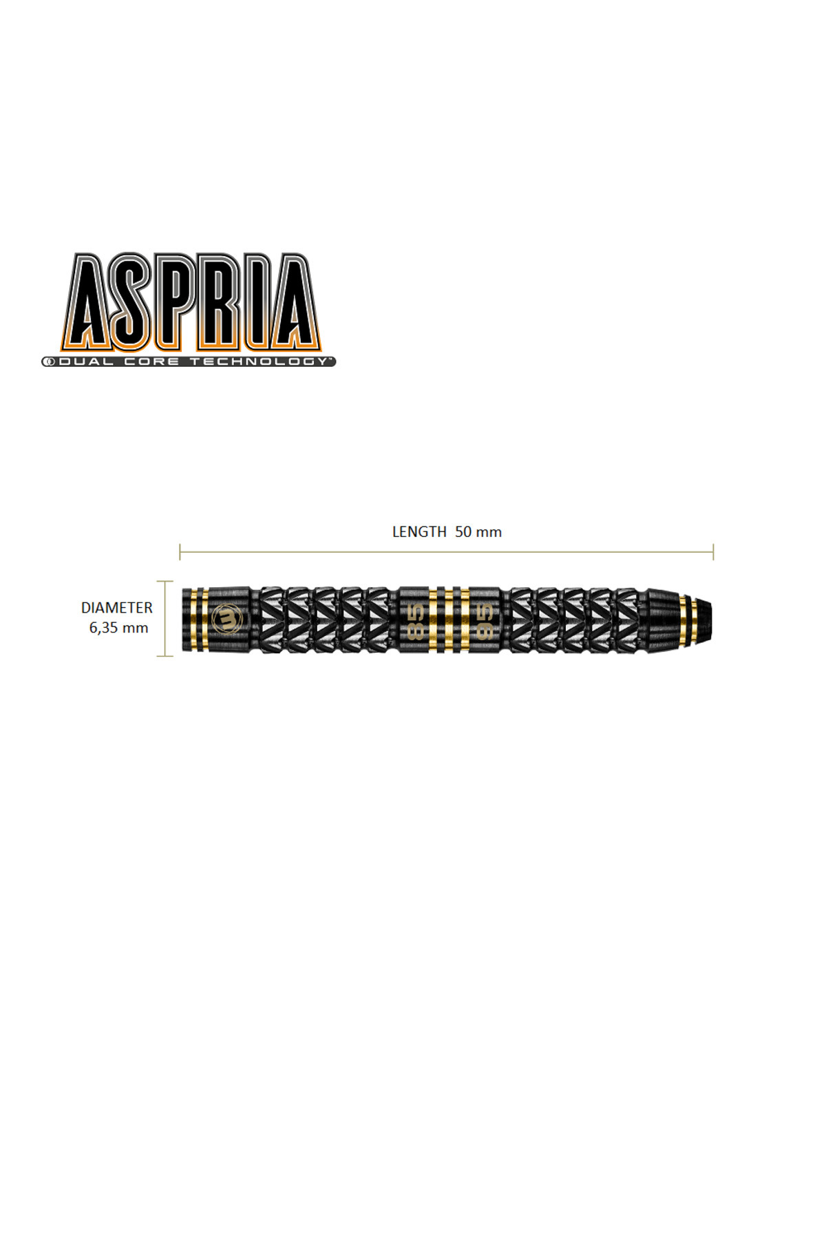 Dart dünyası Aspria Çift Çekirdekli dartlardan sonra asla eskisi gibi olmayacakDevrimci iki yönlü hassas Tutuş deseni en son CAD CAM teknolojisi kullanarak üretilmiş olup mükemmel bir kontrol sağlarKendine has %95 ve %85 tungsten gövdeden oluşan Çift Çekirdek teknolojisiyle imal edilen bu dartlar imalat yöntemiyle birlikte önden yüklemeli bir özellik kazanmıştırDart tasarımında adeta yeni bir çağın başlangıcı diyebileceğimiz Aspria dartların yüzeyi gerçek altın Kaplama ve Onyx Kaplama ile tamamlanmıştırHer atış stiline uygun olmakla birlikte özellikle önden yüklemeli dart sevenlerin vazgeçilmez tercihi olmaya adaydır