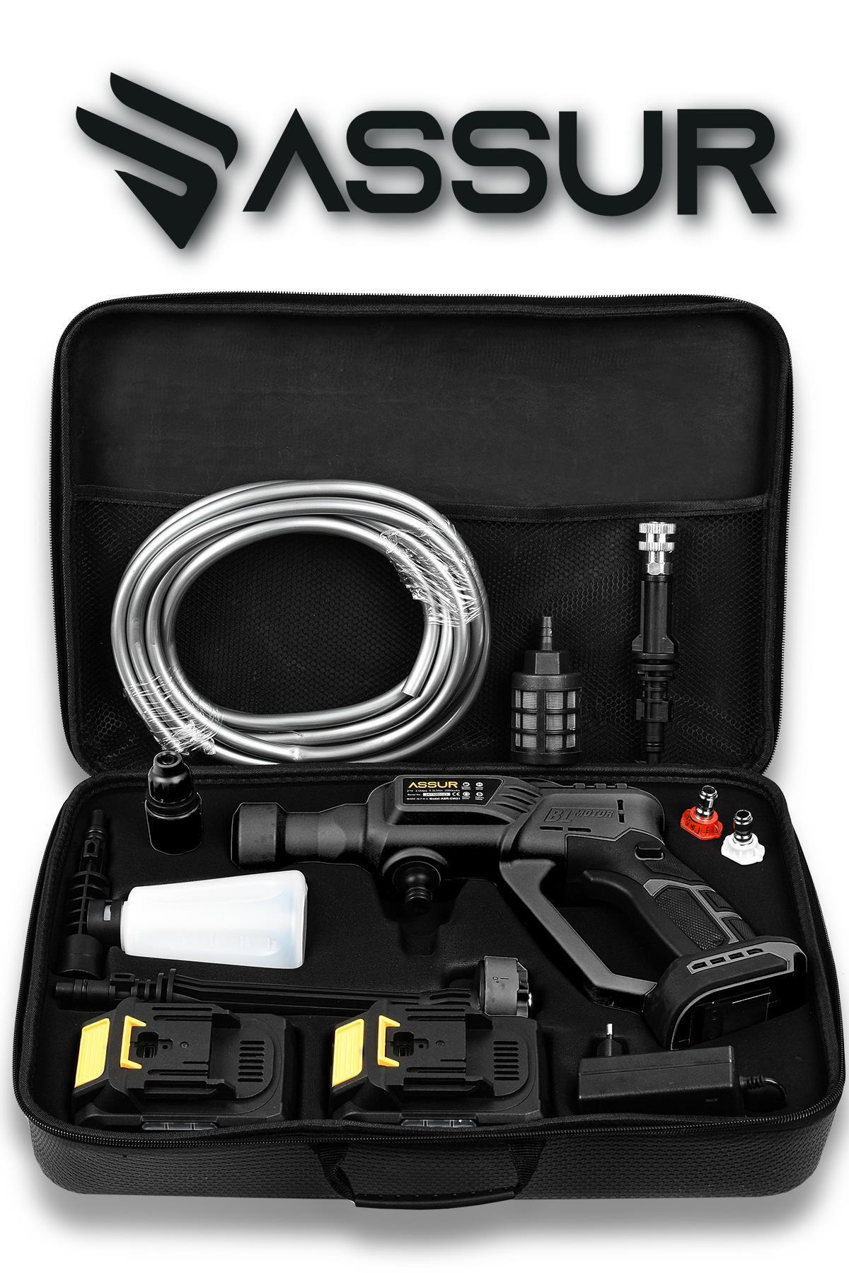 Assur 21V Kömürsüz Motor Yüksek Basınçlı Akülü Oto Araba Yıkama Makinesi Şarjlı Siyah