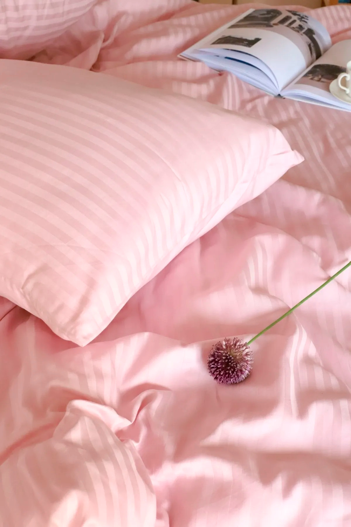 • Çift Kişilik Çizgili Saten Nevresim Takımı