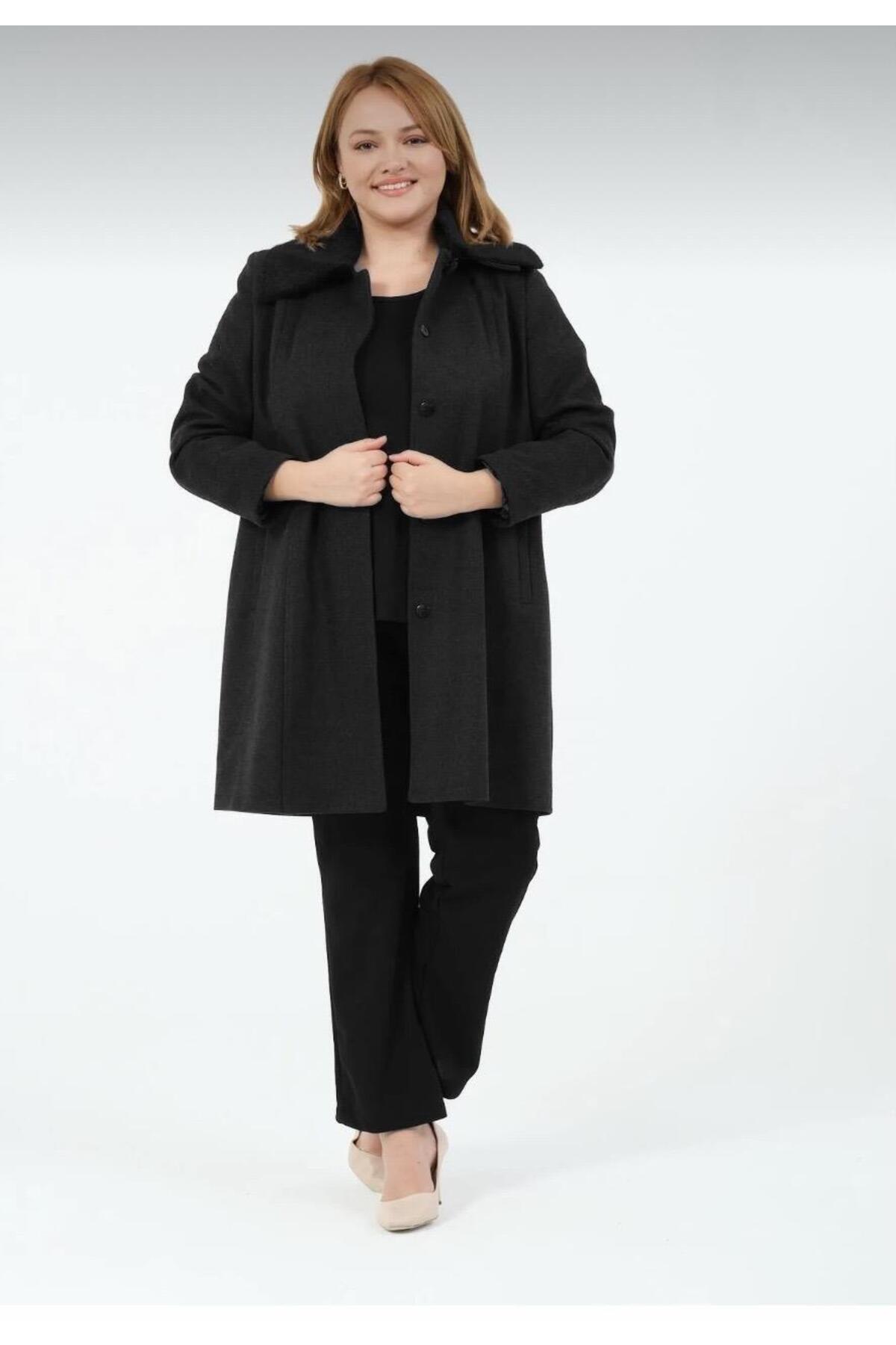 PAMELA KADIN ASTARLI YAKA TÜYLÜ ERKEK YAKA KISA KAŞE KABAN