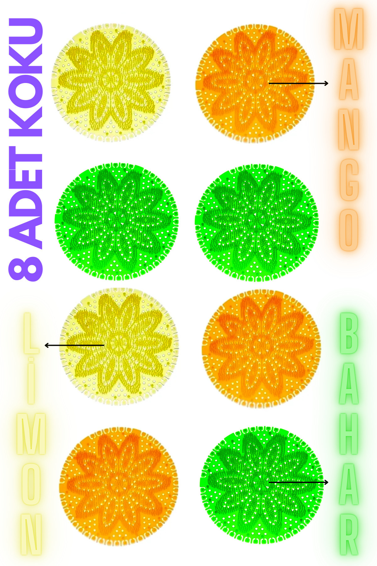 Lavabo Pisuvar Süzgeci Koku Giderici 8'Li Paket - Bahar Kokusu - Mango Kokusu - Limon Kokusu
