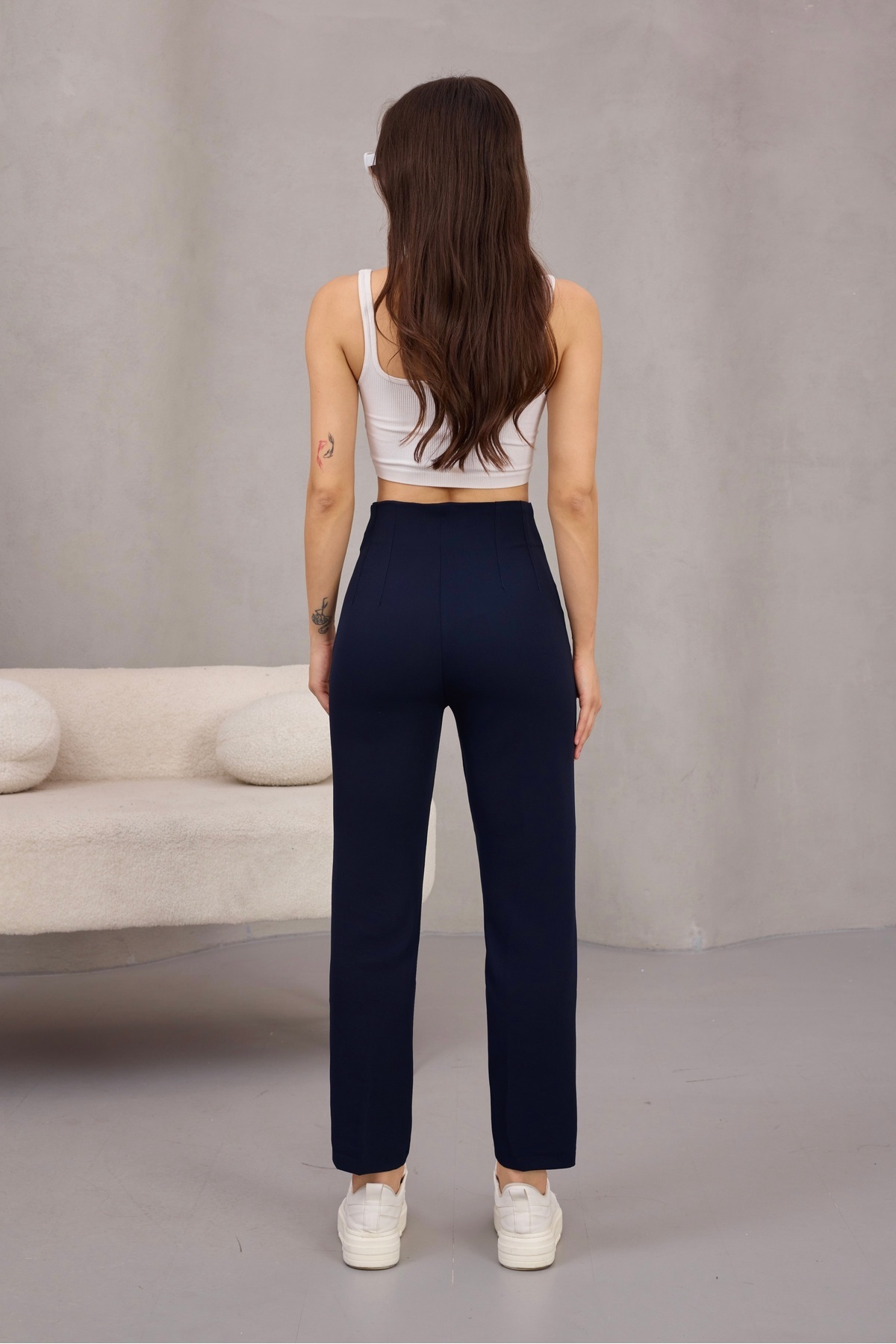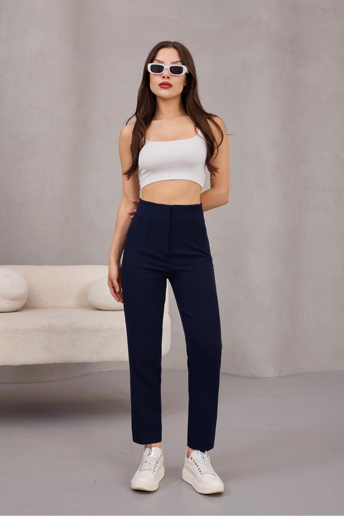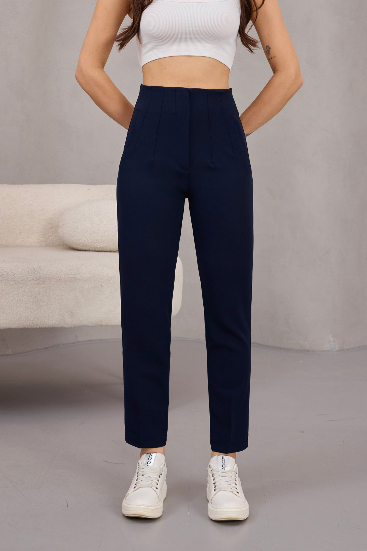 Ürün boyu : 93 cm , Dar Paça Pensli Kumaş Pantolon Kumaş Bilgisi: %30 pamuk %65 polyester %5 elastan Yıkamada ürünü bozmamak için 30 C'yi aşmayınız.
