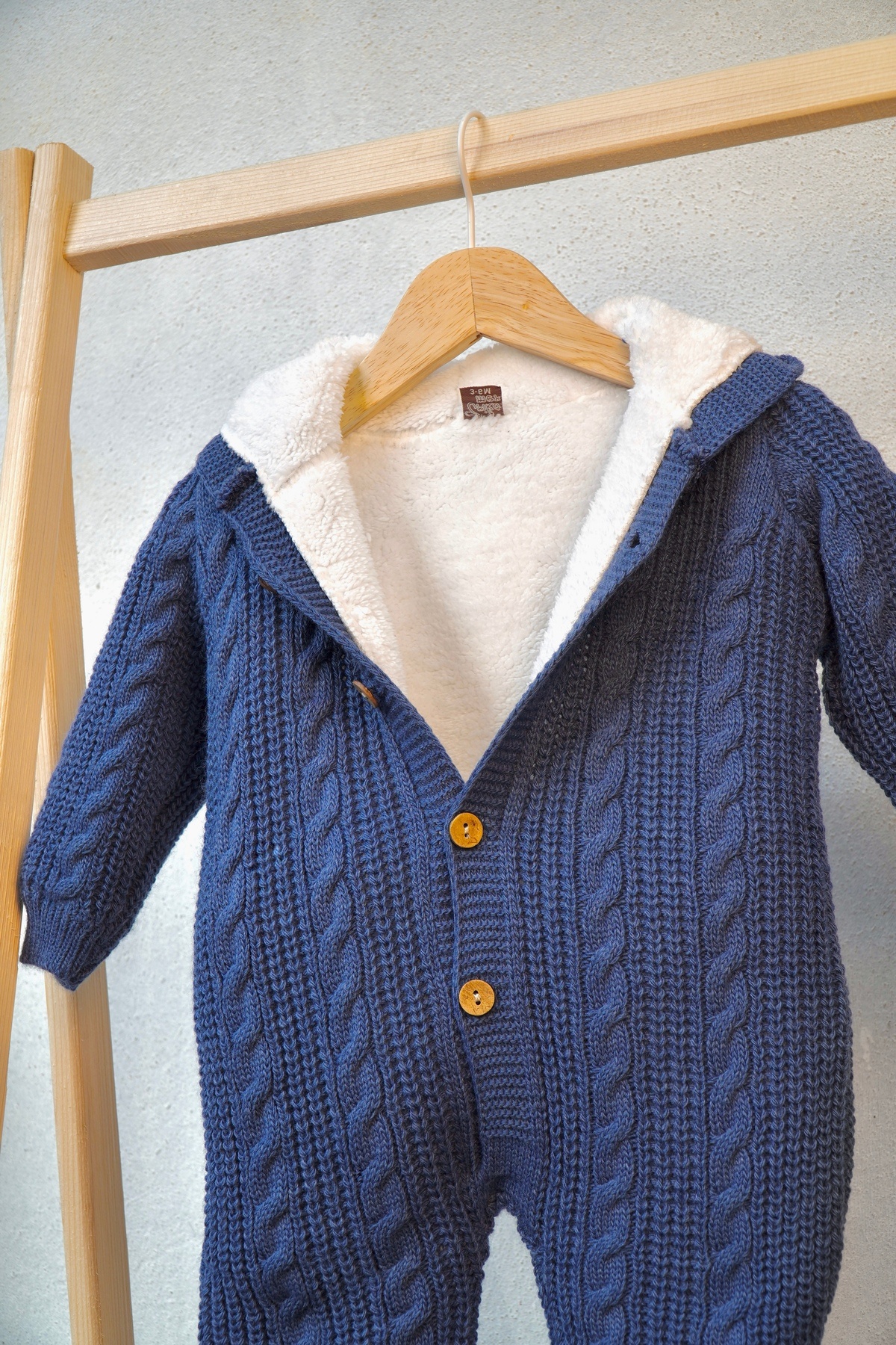 Triko tüm içi Wellsoft EXTRA yumuşak saç örgü desenli yenidoğan bebek tulum