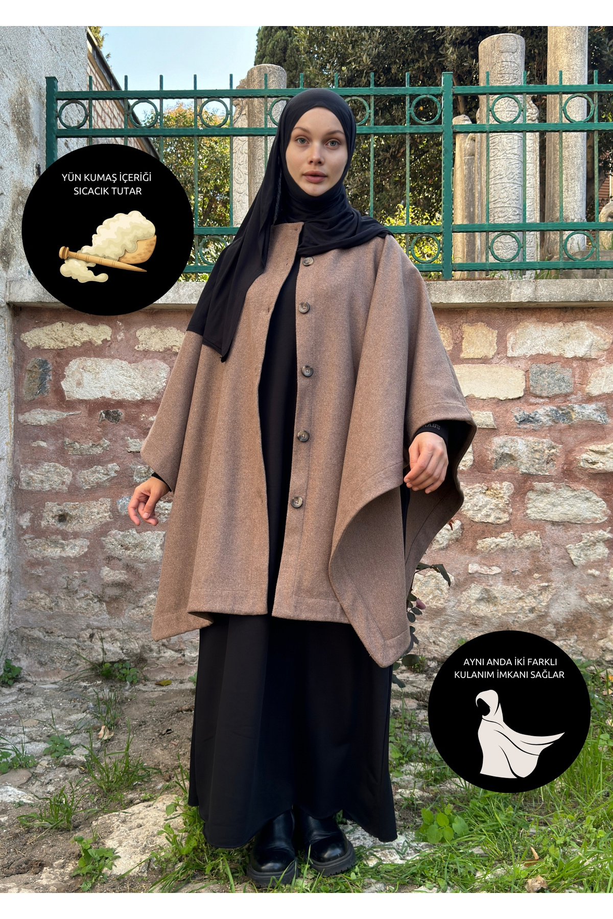 - Uzun kollu tasarımı ile mevsim geçişlerinde ve serin havalarda sizi sıcak tutan yün kaşe panço.