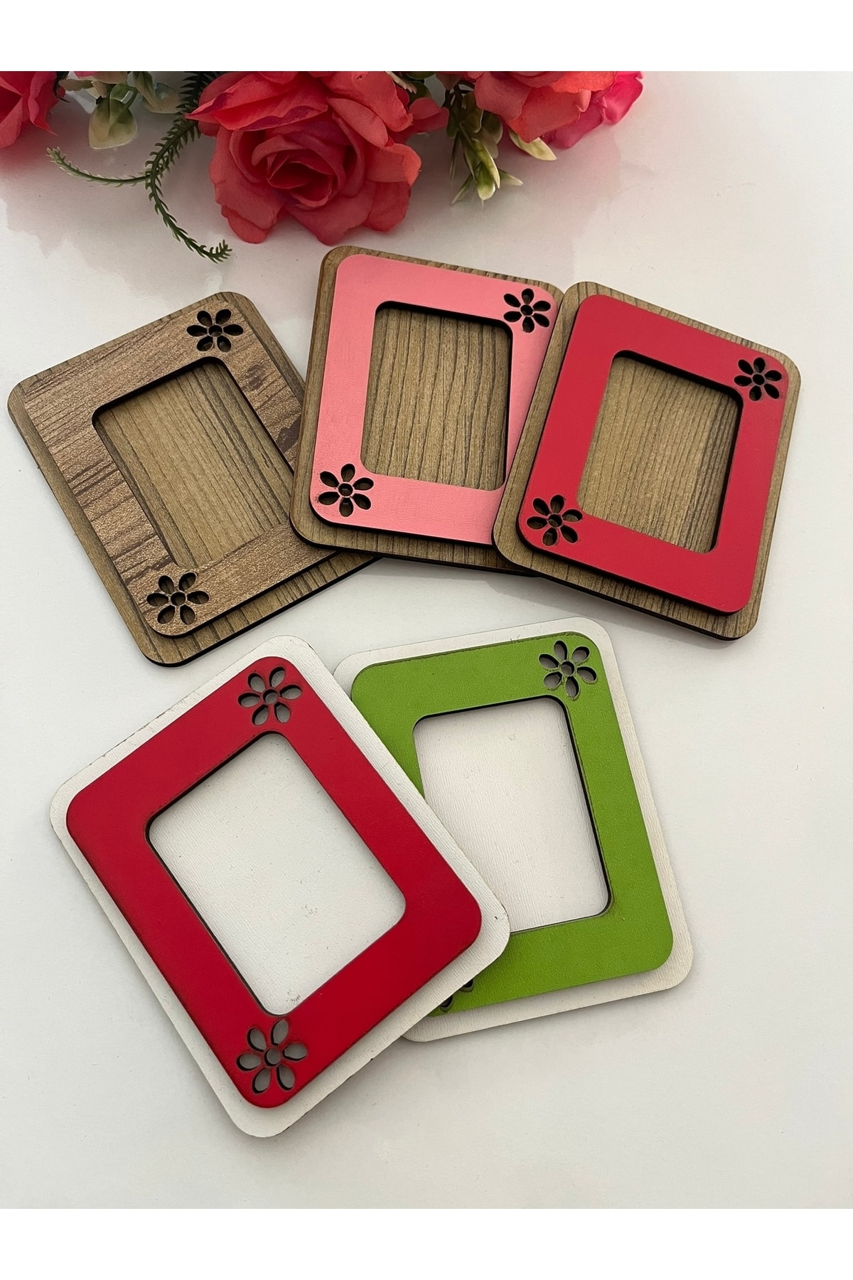 5 Adet Ahşap Vesikalık Çerçeve Ahşap Renklerde Ayaklı Raf Masa Üzeri
