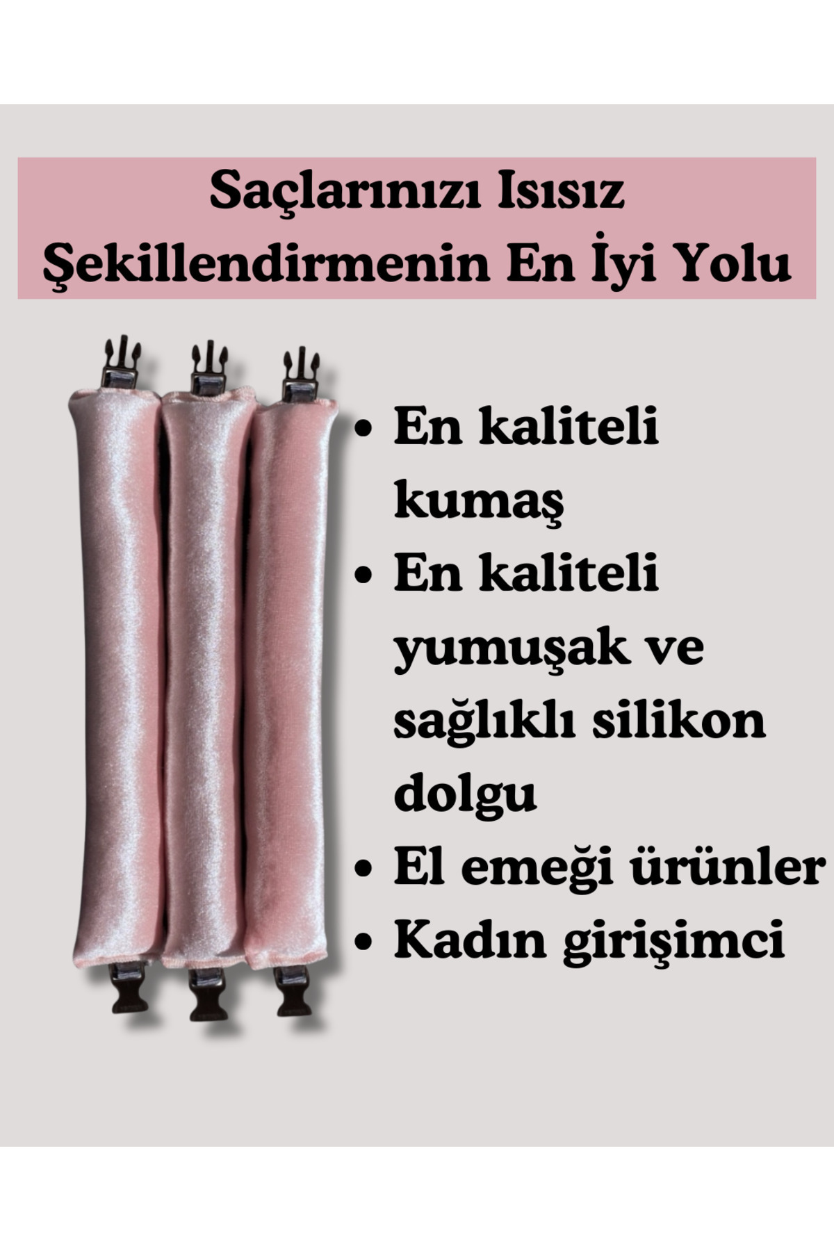 Kadife Saç Sosisi Şekillendirici Bigudi Isısız Saç Şekillendirici Bigudi 3 Adet Pembe
