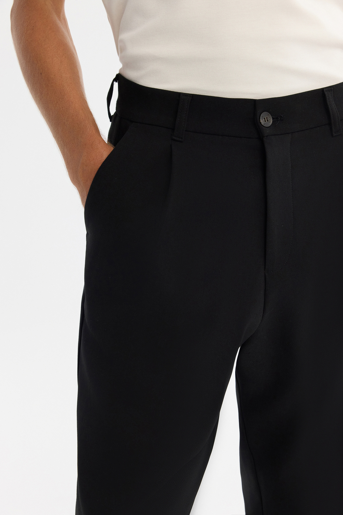 Yandan cepli, Klasik bel plileli, Esnek kumaş, Geniş paça, Önden fermuar ve düğme kapama, Arkada fleto cepli, Baggy Fit Pantolon
