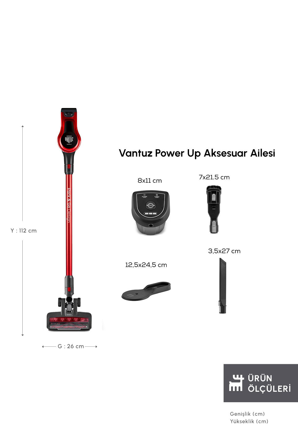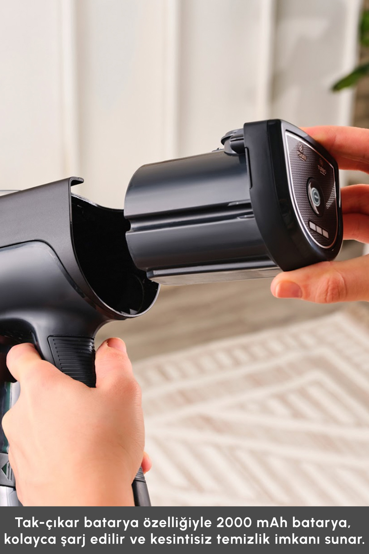 Çıkarılabilir batarya teknolojisi sayesinde, Vantuz Power Up süpürgeniz istenilen yerde veya askısında kolayca şarj edilebilir. Üstelik 2000 mAh batarya ile Power moduyla el tipi süpürge formunda 60 dakika, standart süpürge formundayken 50 dakika kesintisiz temizlik imkânı sunar.