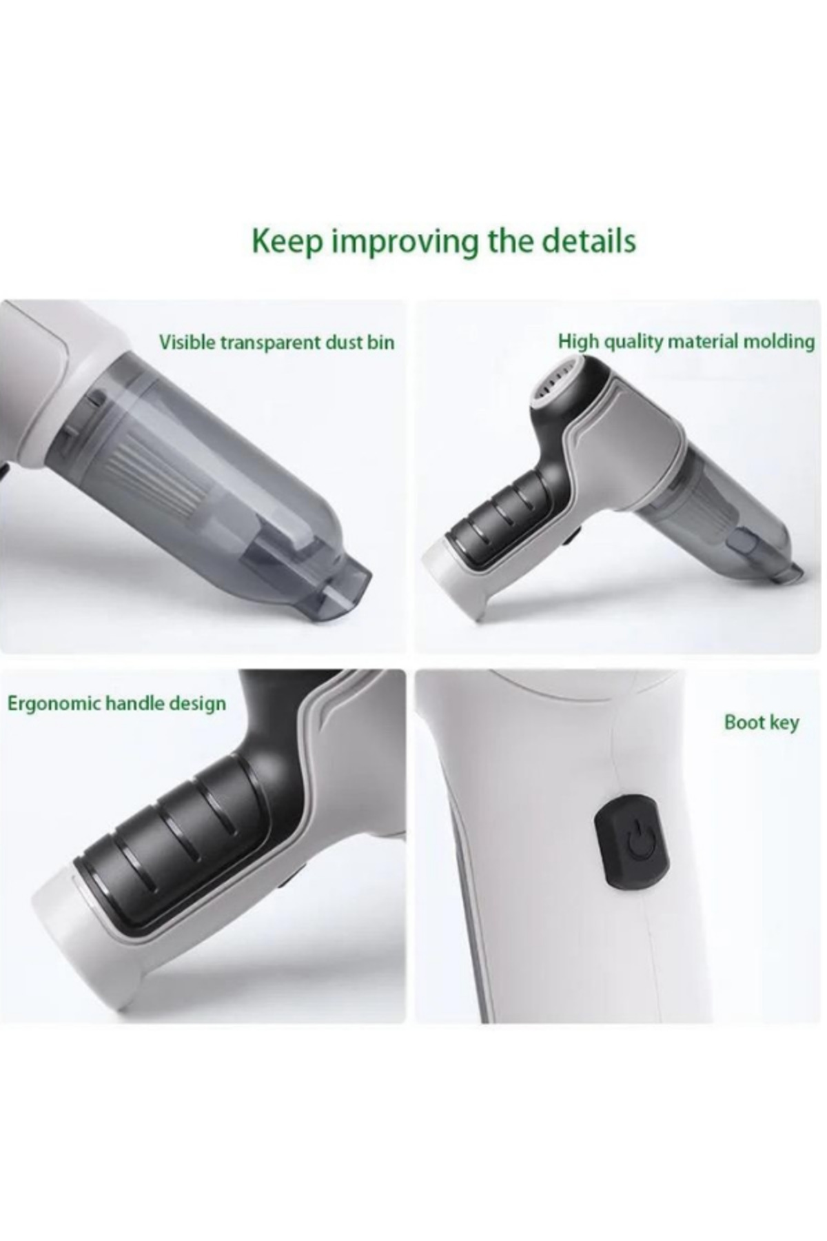 - 1200 mAh yüksek kapasiteli batarya ile uzun süreli kullanım imkanı sunar, böylece aracınızın içini kolayca temizleyebilirsiniz.