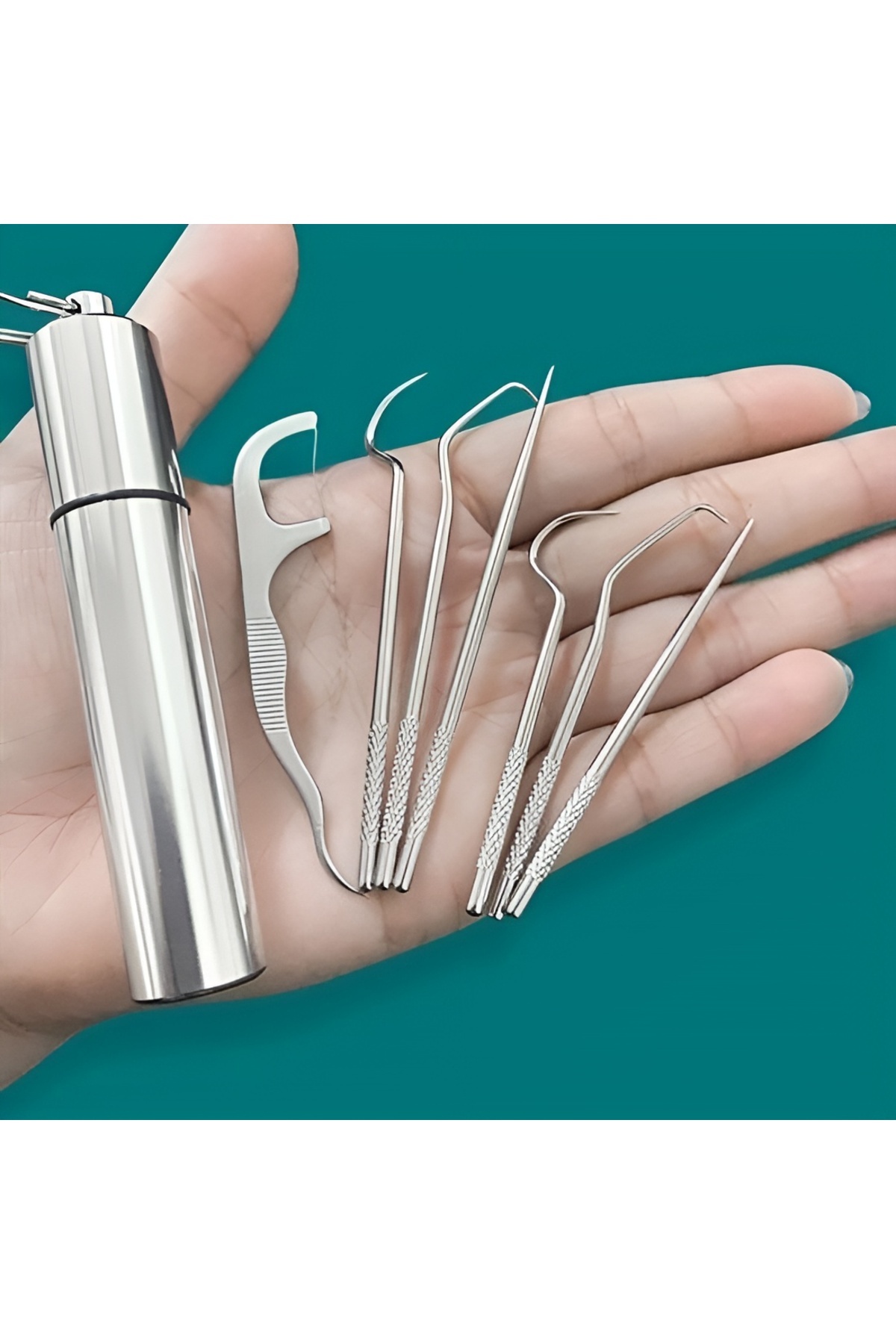 7 Parça Paslanmaz Çelik Ağız Diş Tartar Sökücü Temizlik Bakım Seti Paslanmaz çelikten üretilmiştir sağlam ve dayanıklıdır, kırılması kolay değildir. Paslanmaz yapısı sayesinde kullanımdan sonra temizlemeniz için uygundur. Kapsamlı temizlikten sonra tekrar tekrar kullanılabilir 7Parça Paslanmaz Çelik Ağız Diş Tartar Sökücü Temizlik Bakım Seti. Düzenli kullanımla ağız ve diş sağlığınızı korumak için yardımcı olur. Farklı talepleri karşılayan 7 parça temizlik aracı bulunmaktadır. Dişlerinizde kalan tartarları derinlemesine temizleyerek ağız kokusunun giderilmesine de yardımcı olur. Enfeksiyon riskini en aza indirmek için yardımcı olur 7 Parça Paslanmaz Çelik Ağız Diş Tartar Sökücü Temizlik Bakım Seti. Temelde oluşan tartar, bakteri, kalıntı sakız vs. gibi zor lekeleri kaldırarak dişlerinizin temiz kalmasını sağlar. Seyahat ederken yanınızda taşımak için uygundur. Hem ev kullanımı veya profesyonel diş hekimi kullanım için uygundur. Taşıma kutusu mevcuttur. Ürün Ölçüleri Boy:12 cm Çap:1,7