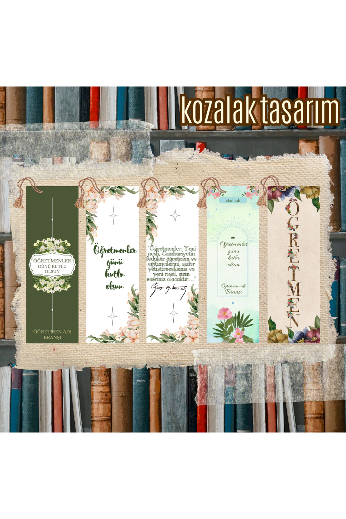 - Öğretmenler Günü kutlamaları için ideal bir hediye seçeneği: Öğretmenlerinize özel olarak tasarlanmış, özelleştirilebilir kitap ayraç seti.