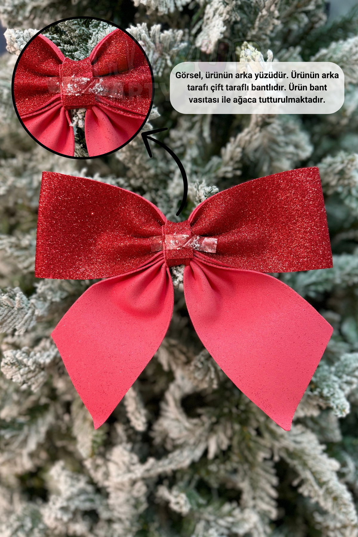 Büyük Kırmızı Eva Fiyonk Kurdele 25x25 Cm Parlak Simli Yılbaşı Temalı Çam Ağacı Süsü Ağaç Dekoru