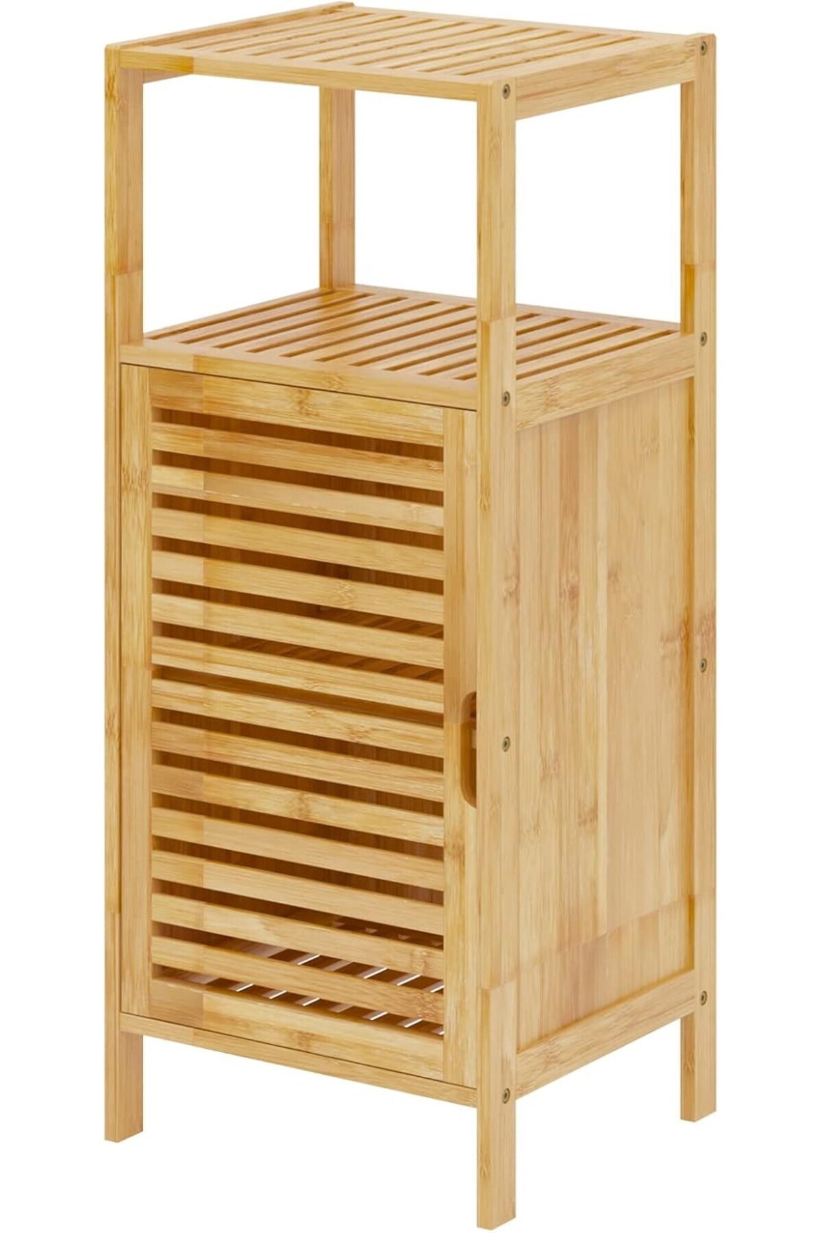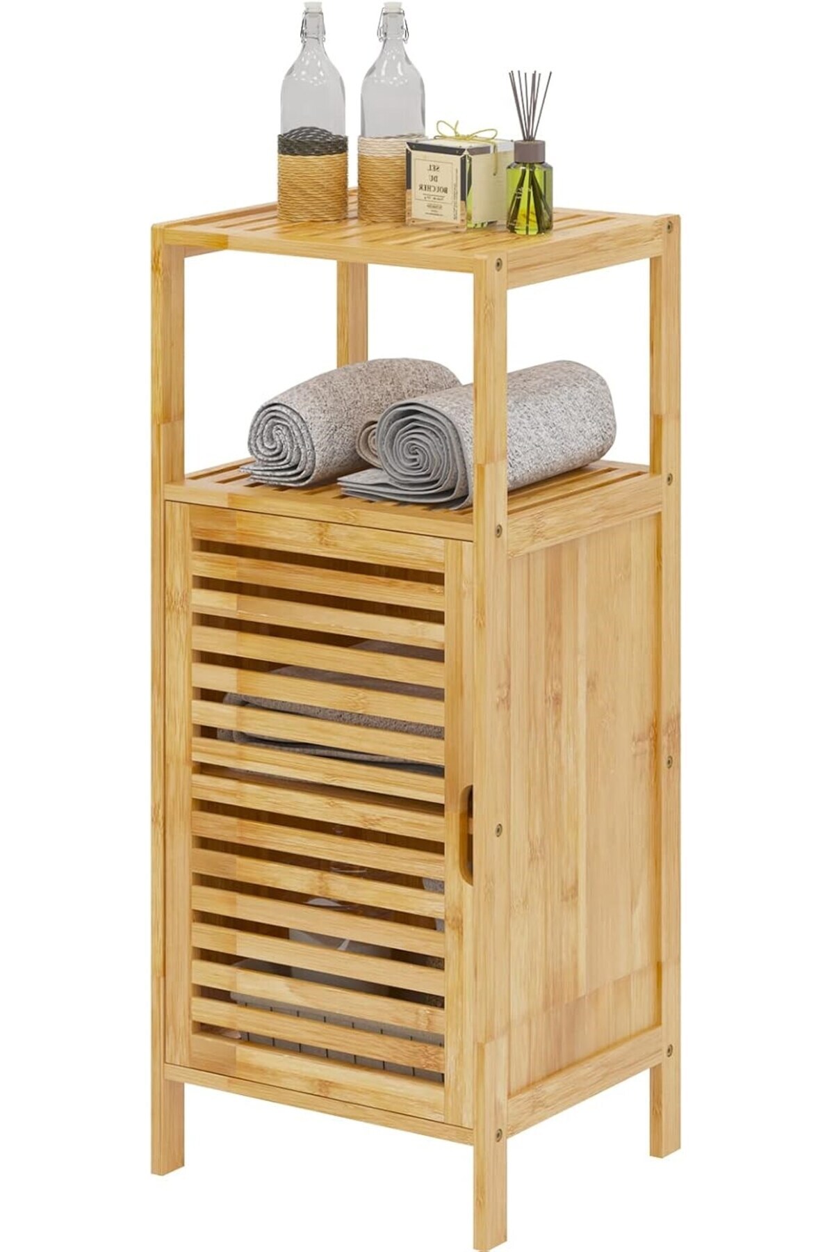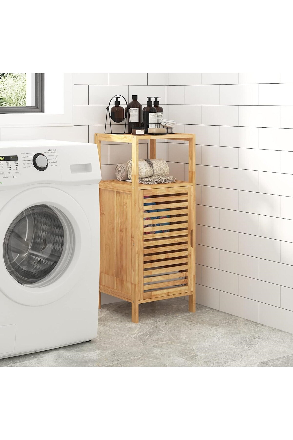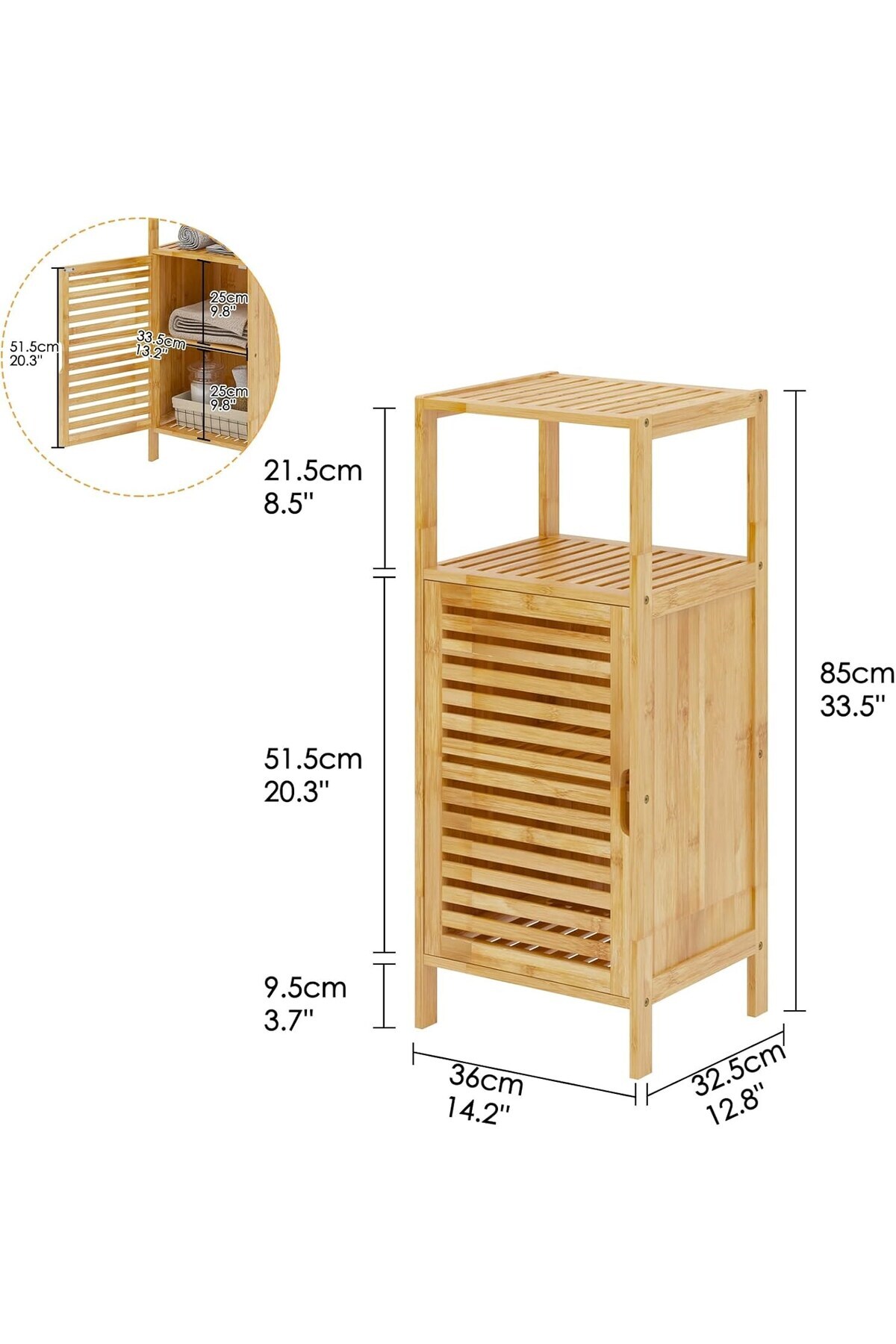 Bambu Banyo Dolabı 4 Raflı Kapaklı Banyo Düzenleme Dolabı Havlu Dolabı
