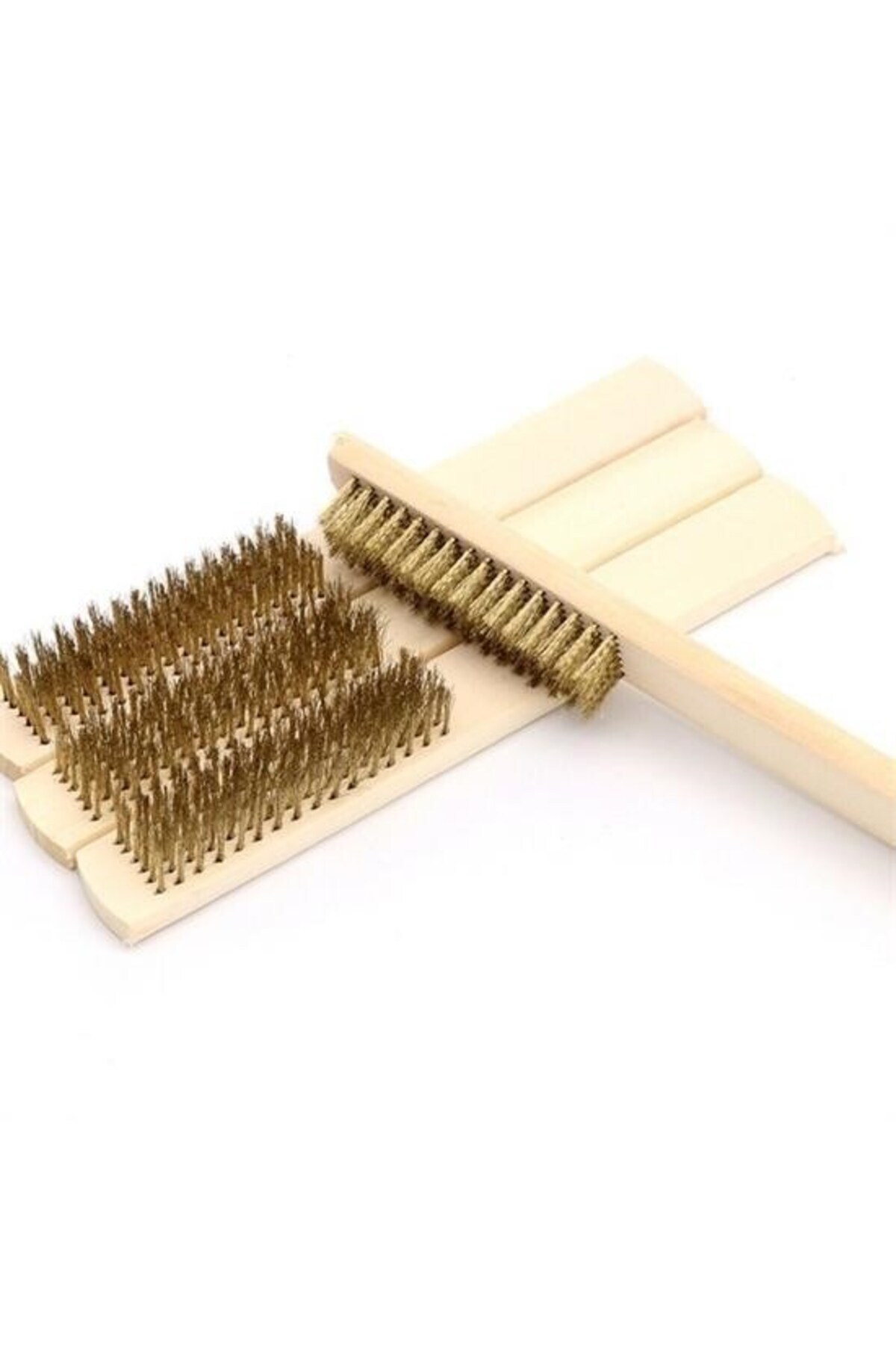 Pas sökücü fırça, metal tellere sahiptir Metal telli fırça, ahşap sapa sahiptir Metal temizli fırçası