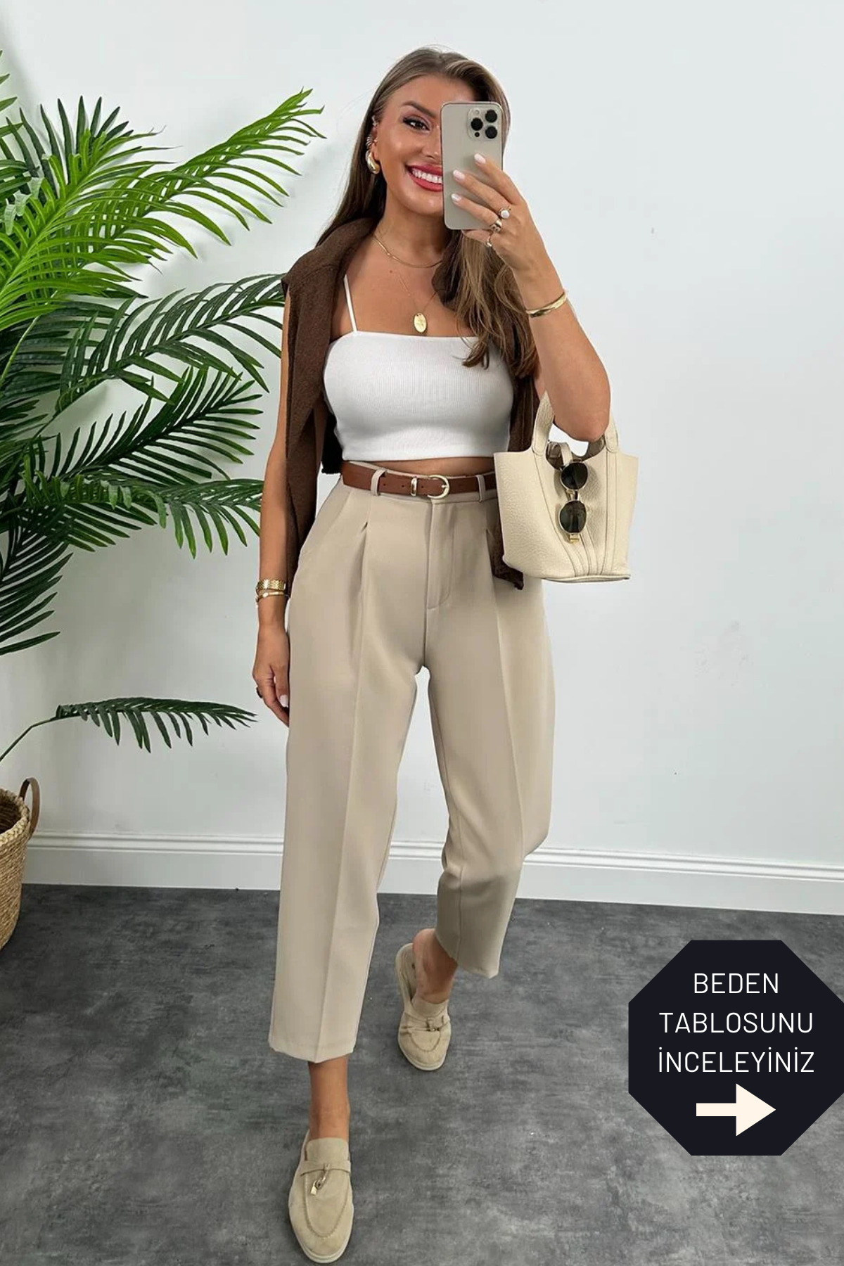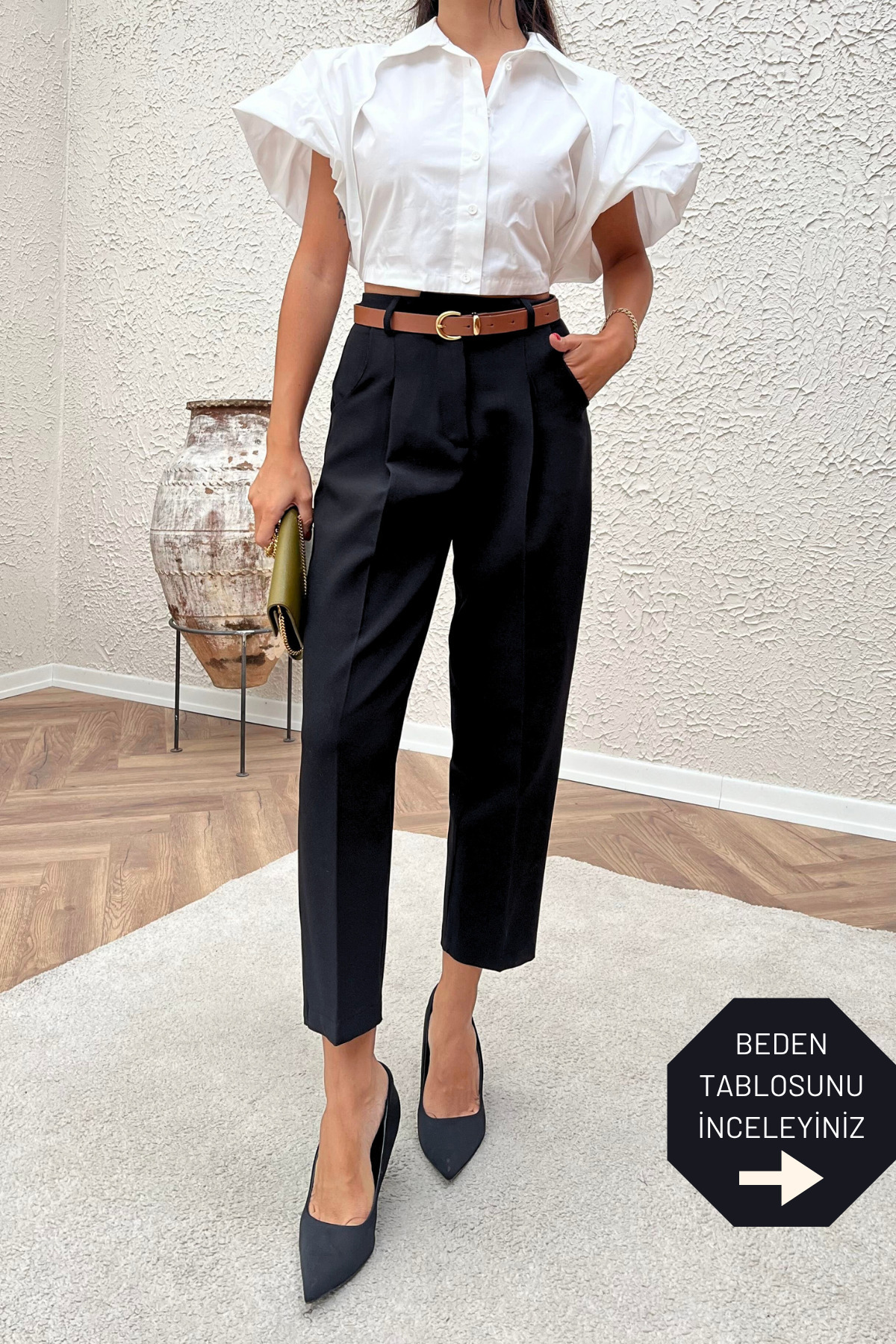 - Boru paça kesimi ile ofis ortamına uygun zarif bir siluet çizer, - Orta kalınlıkta kumaşı mevsim geçişlerinde ideal konforu sunar.