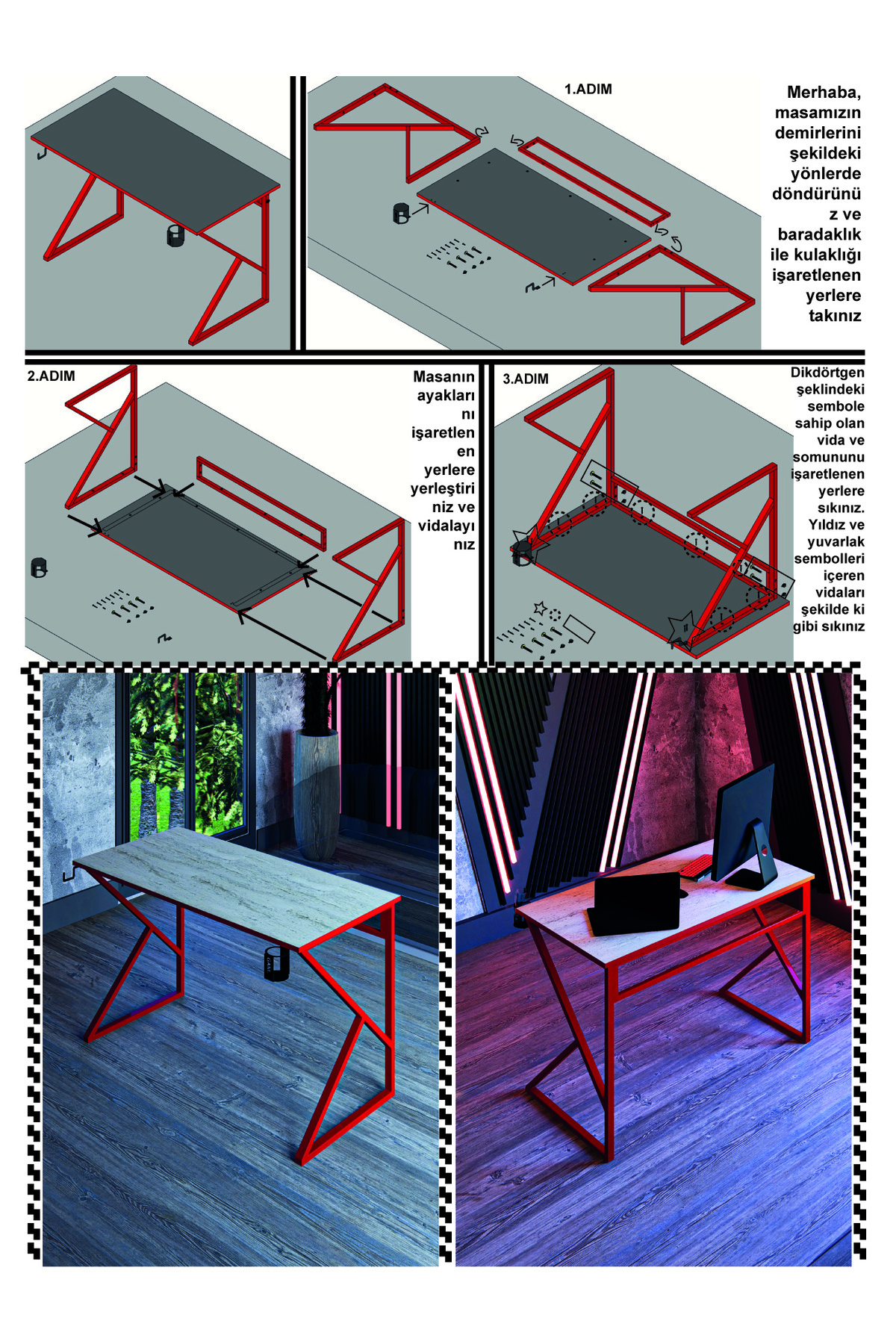 Jacob Oyuncu Masası Çalışma Masası Ofis Masası Yemek Masası Okul Masası Genç Odası 60x120 Cm