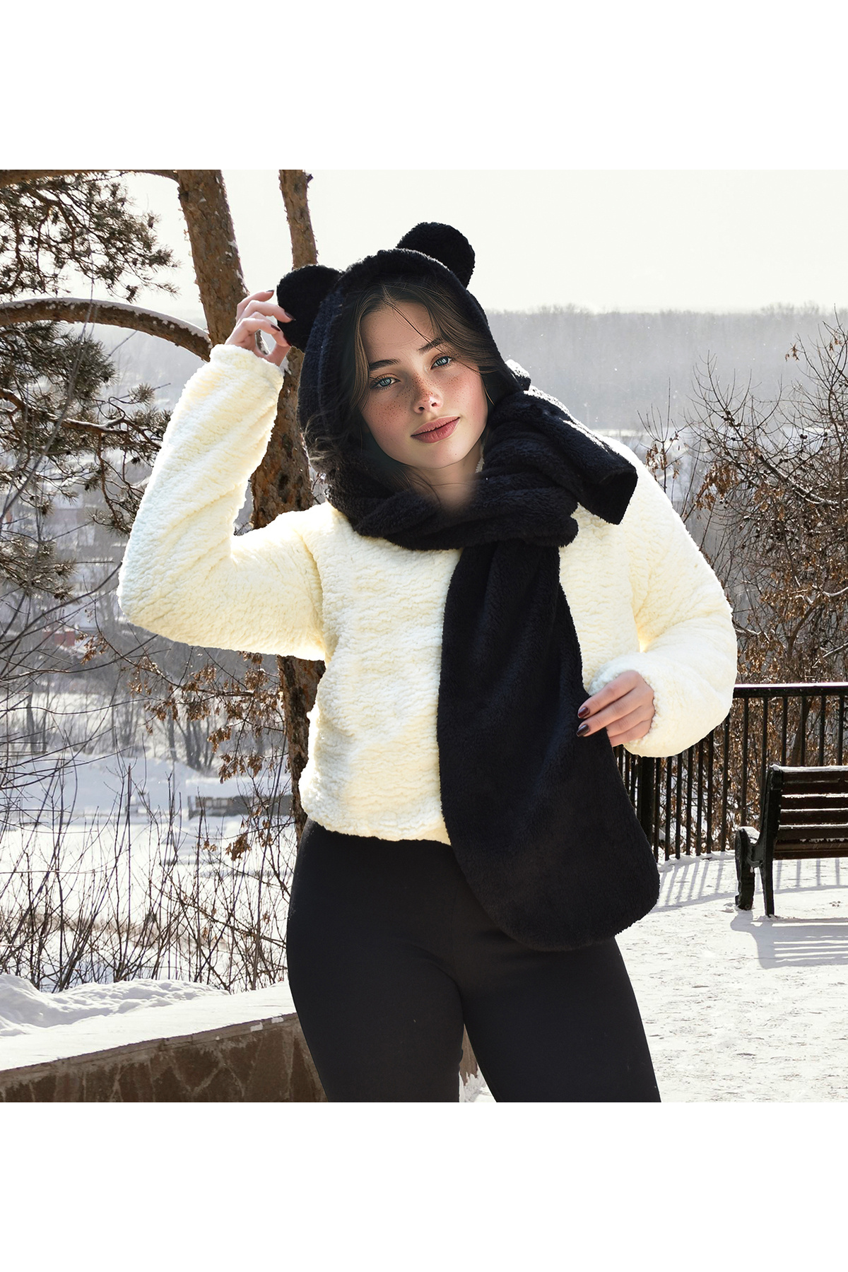 Bu kış, tarzınızı ve konforunuzu bir araya getiren kapüşonlu peluş bere atkı ile tanışın! Özel olarak tasarlanan kadın welsoft polar boyunluk şalı, yumuşak dokusu ve rüzgar geçirmez kulaklı şapkası ile soğuk günlerde sizi sıcak tutar.