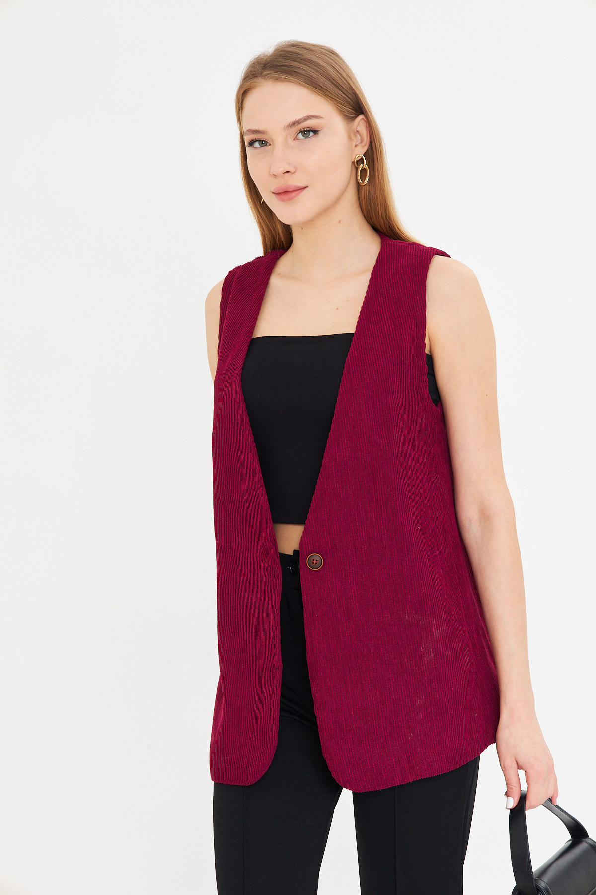 Kadın Kiremit V Yaka Tek Düğmeli Oversize Kalın Fitilli Kadife Yelek ARM-25K001016