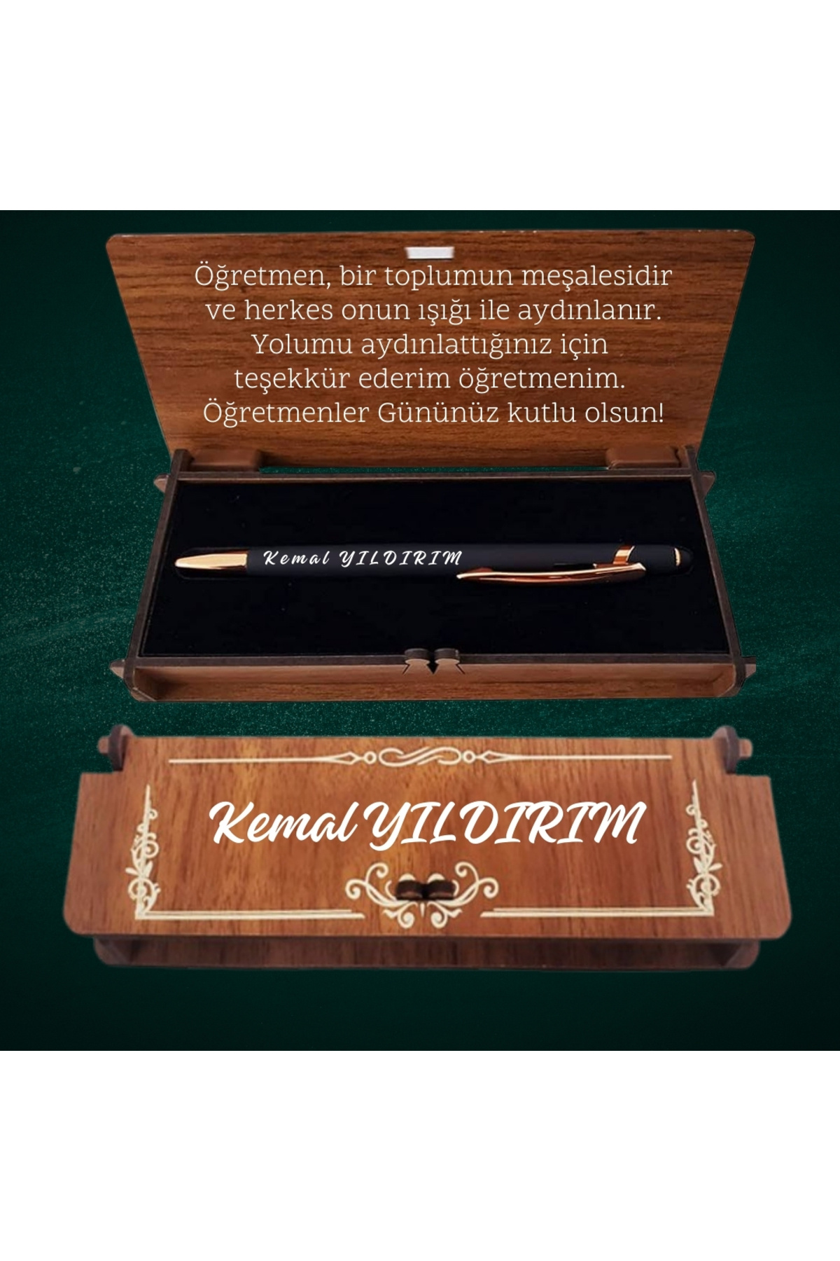 ÖĞRETMENLER GÜNÜ KİŞİYE ÖZEL AHŞAP KUTU İÇİNDE KALEM HEDİYESİ