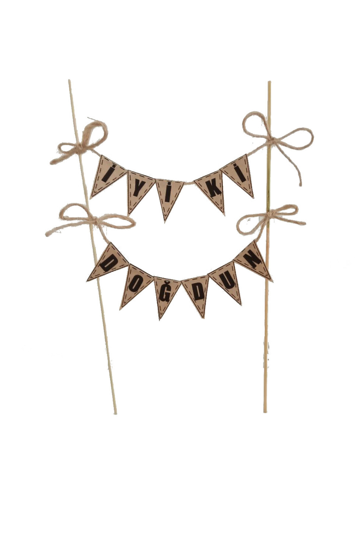 İyiki Doğdun Yazılı Kraft Pasta Bayrağı