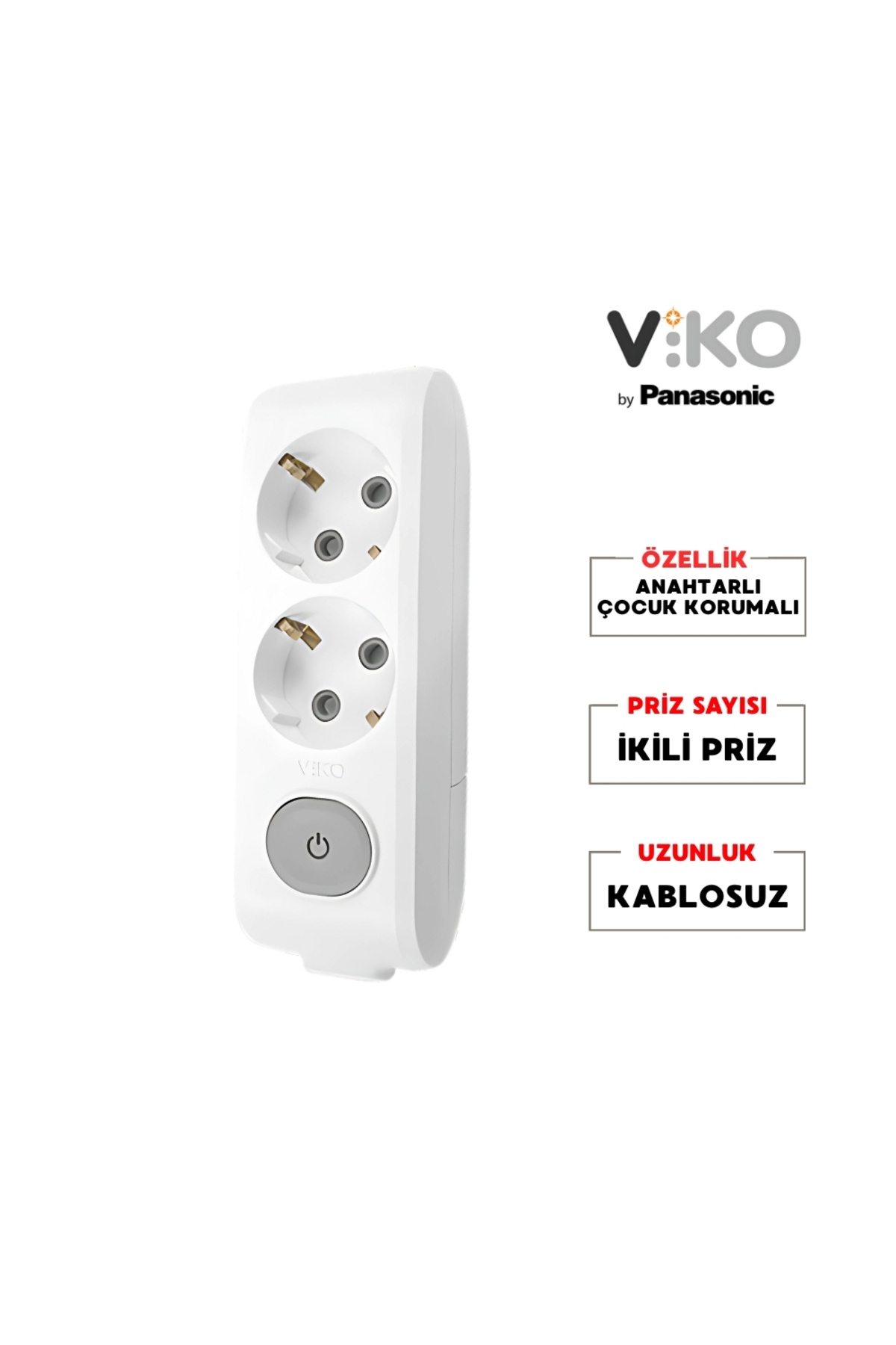 İkili Çoklu Priz, Anahtarlı, Uzatma Kablosu, Kablosuz, Beyaz