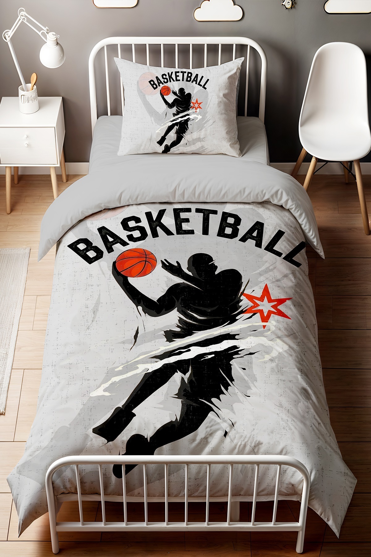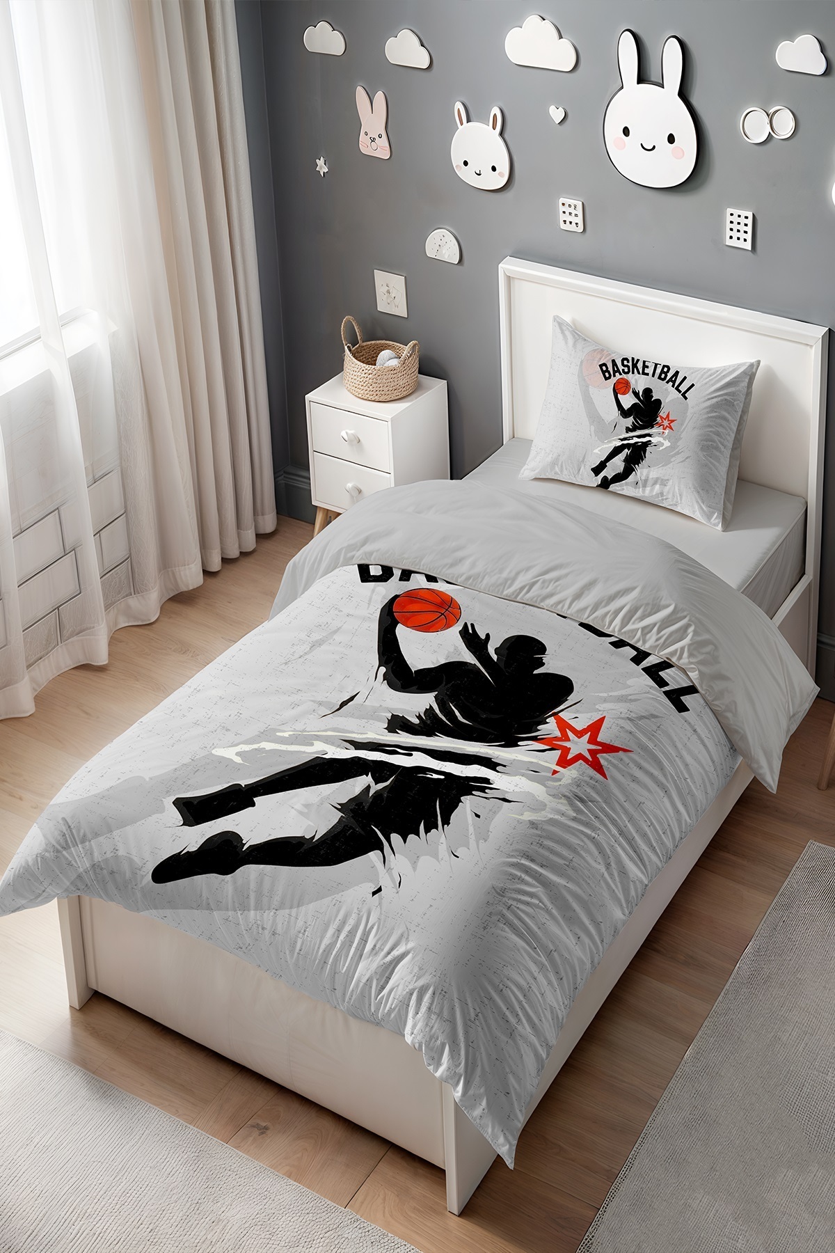 Gri Basket Yıldızı Desenli Tek Kişilik Bebek Çocuk Nevresim Seti