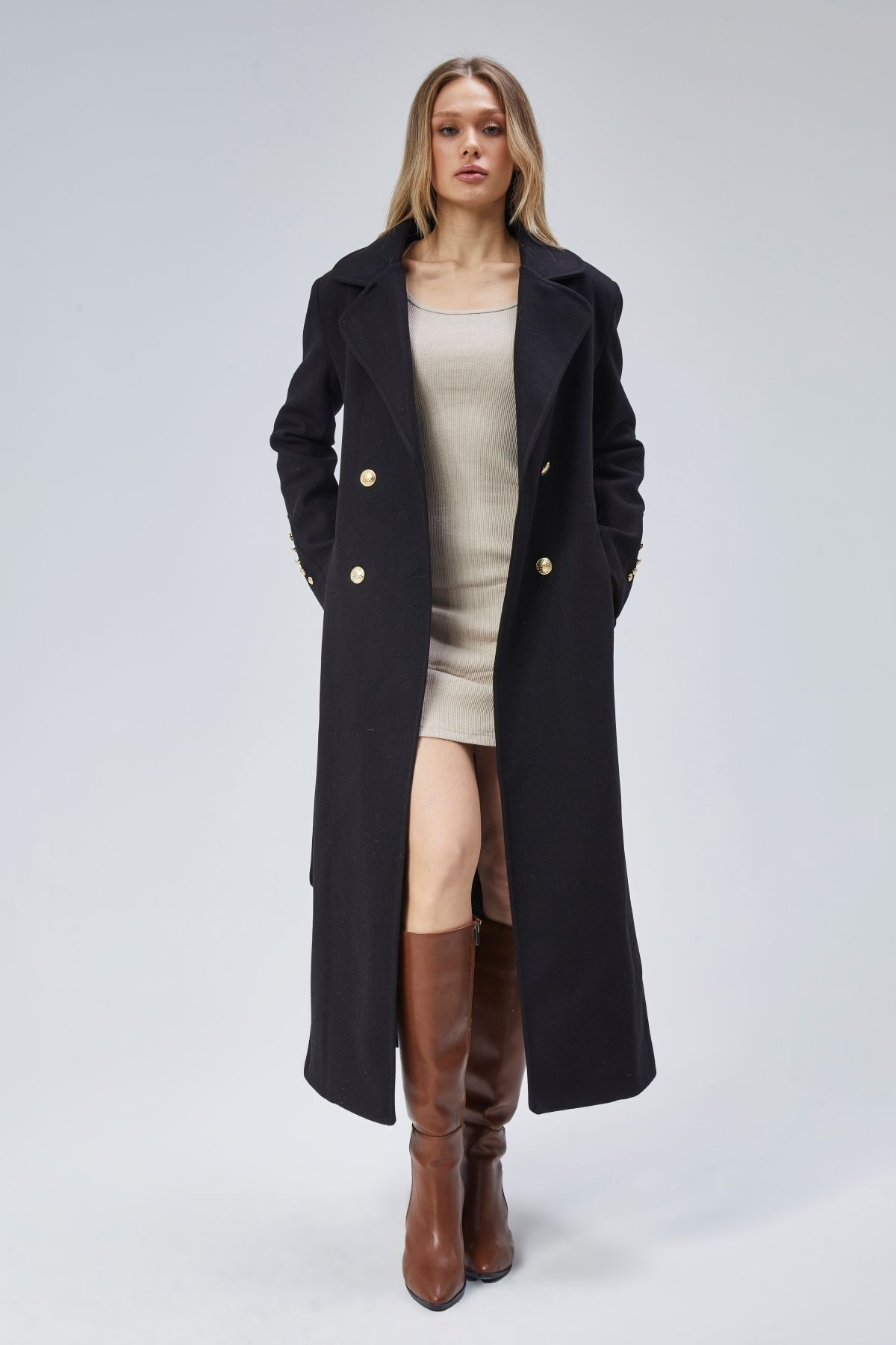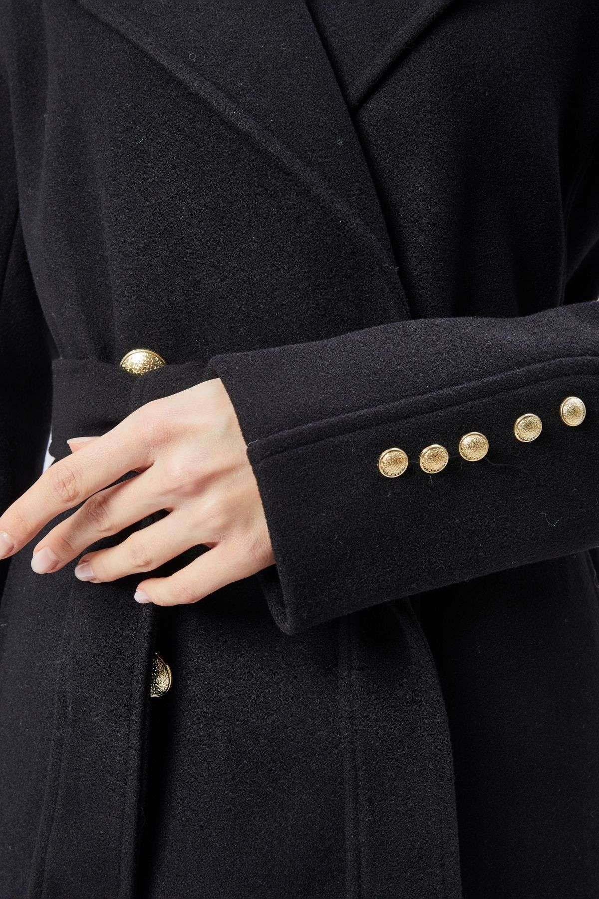 Kadın Kol Düğme Detaylı Regular Astarlı Kaban