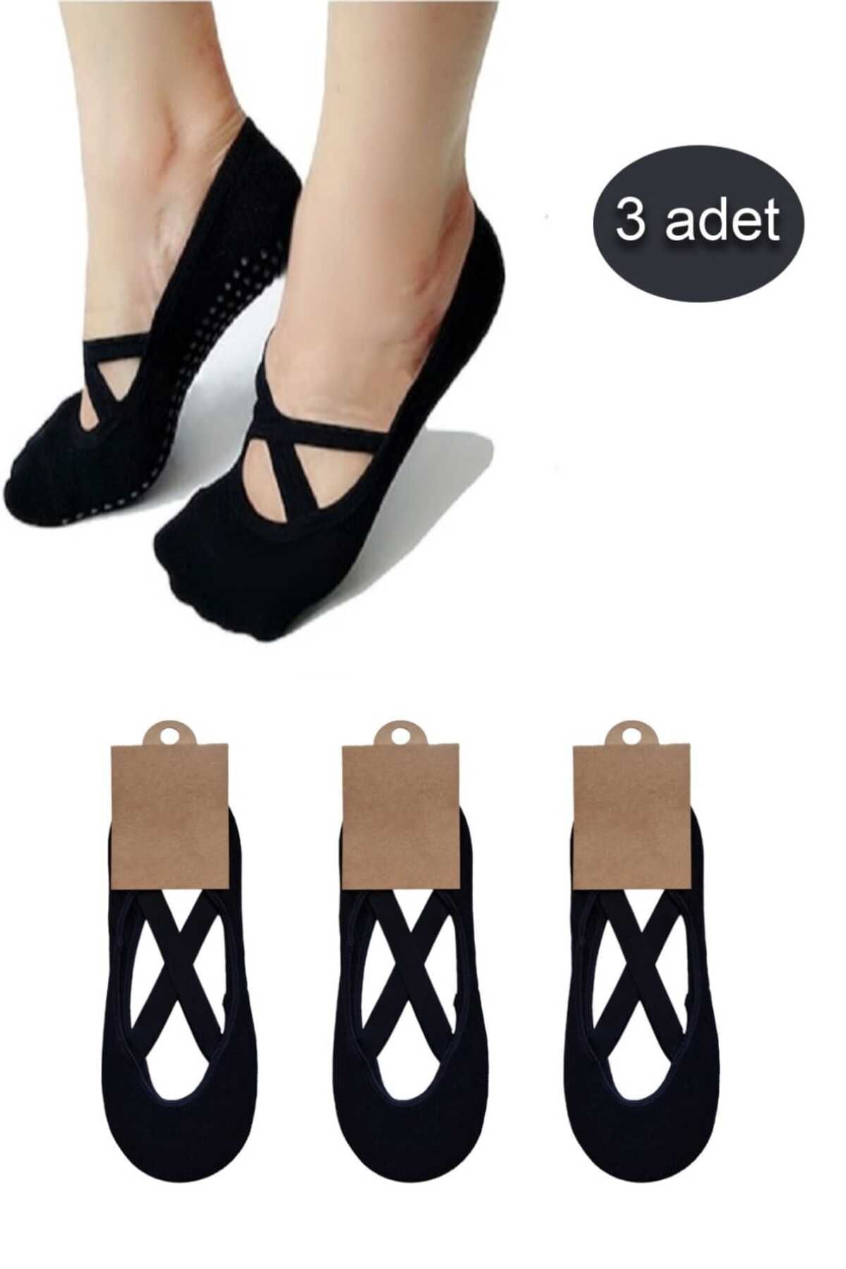 Siyah Renk 4 Çift 35-40 Beden Yoga Fitness Çorap