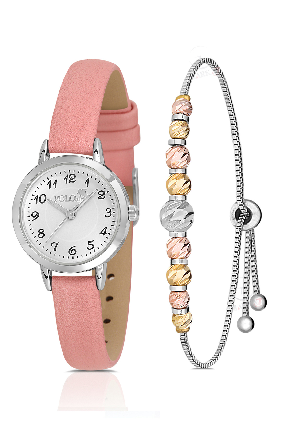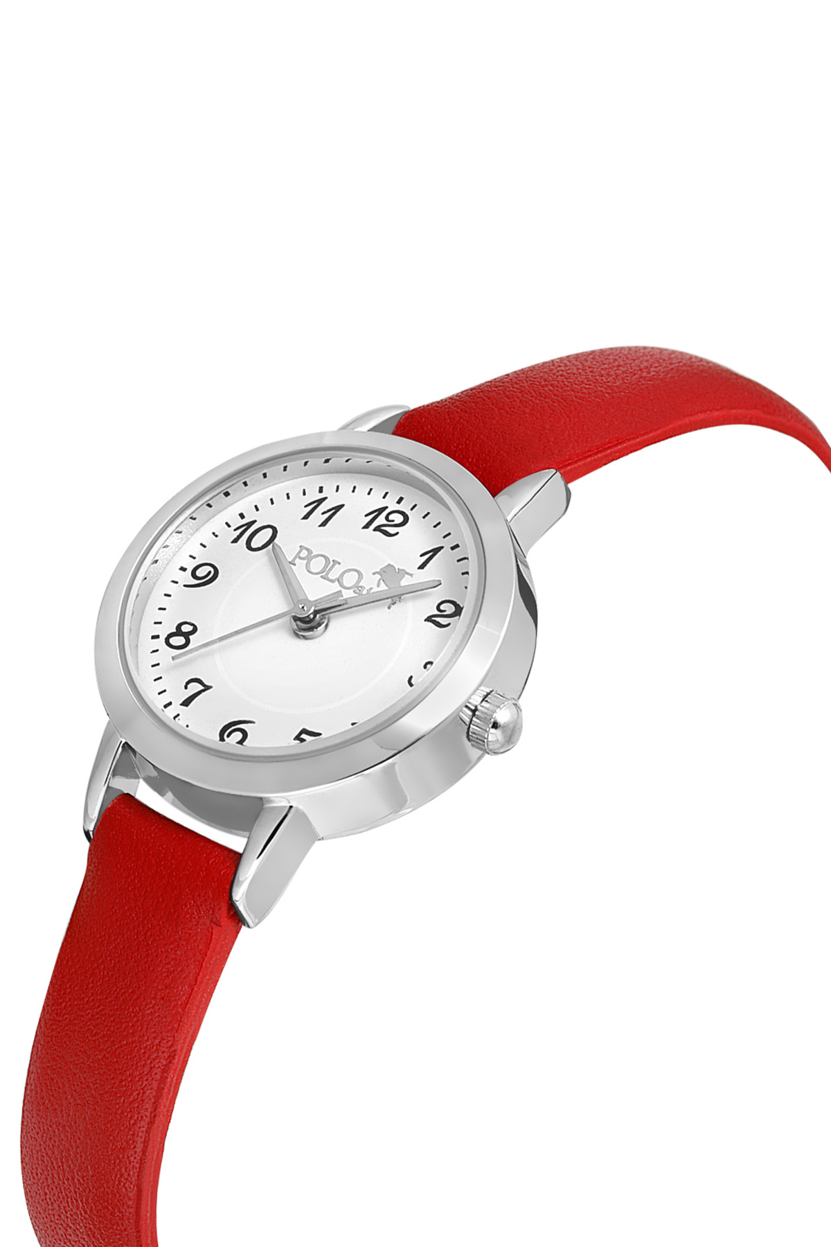 Klasik Deri Kordon Kadın Kol Saati Dorika Bileklik Kombin Kırmızı Gümüş Renk PL-1518B4
