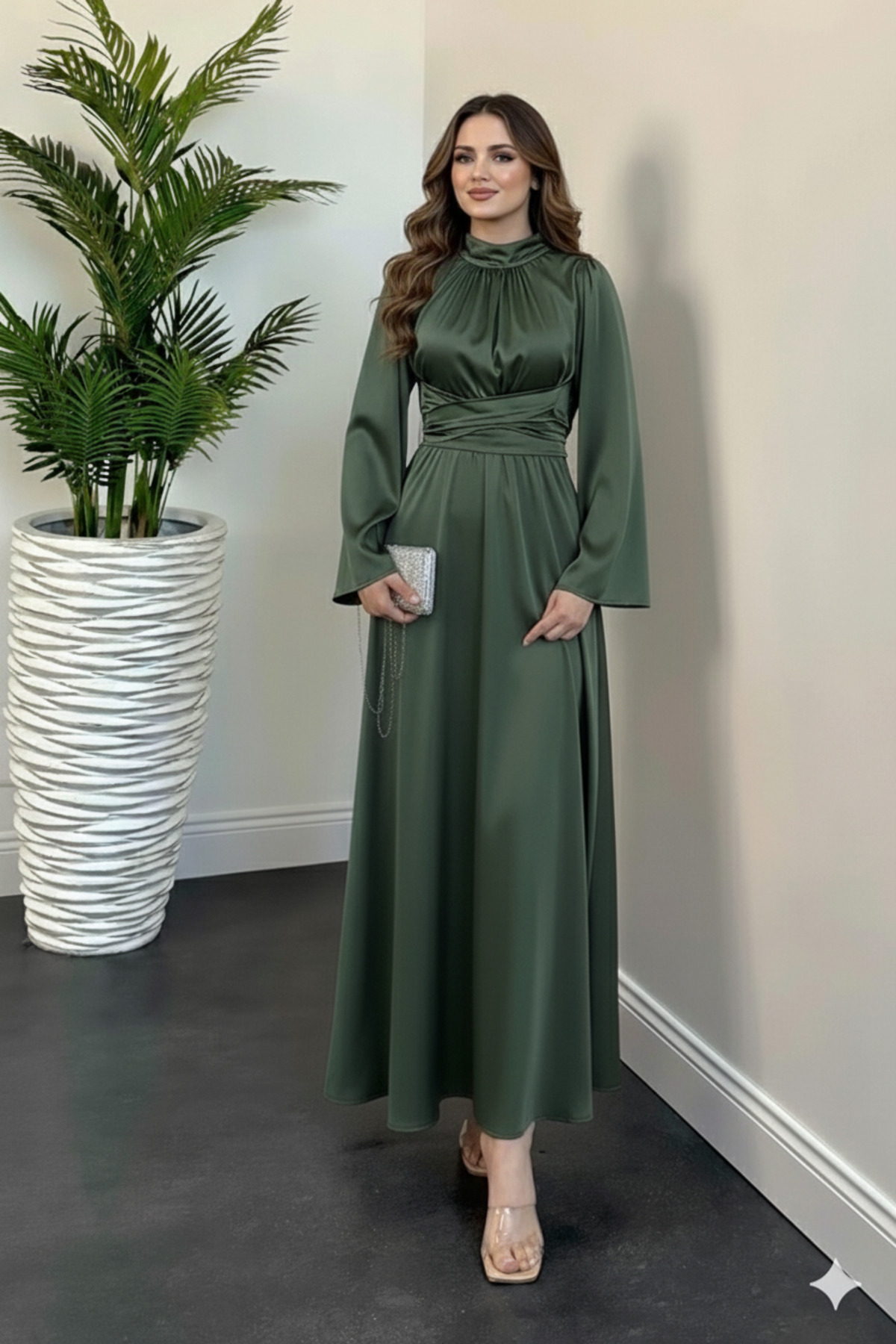 - Saten dokusu, zarif bir parlaklık ve yumuşak bir dokunuş sağlar.