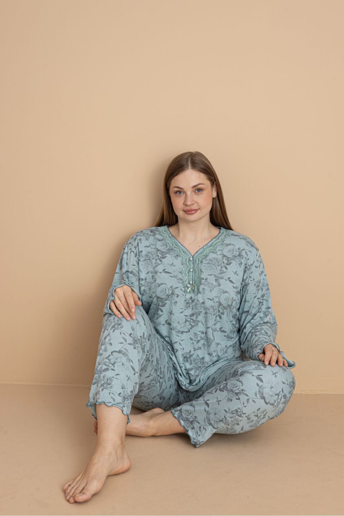Kadın Büyük Beden Uzun Kollu Bambu Pijama Takımı