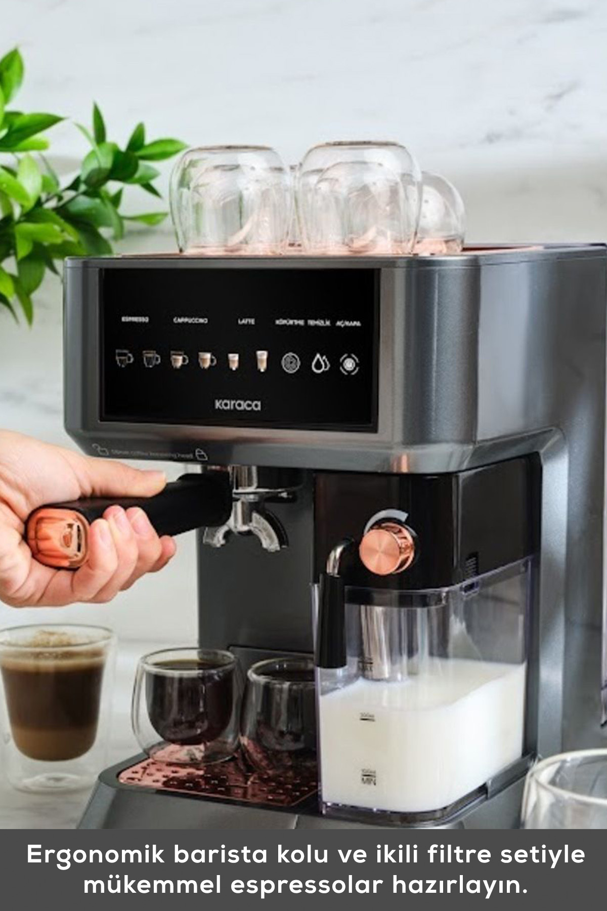 Karaca MyCaffe Barista S10 Entegre Süt Hazneli, Otomatik Espresso, Latte ve Cappuccino Makinesi Copper