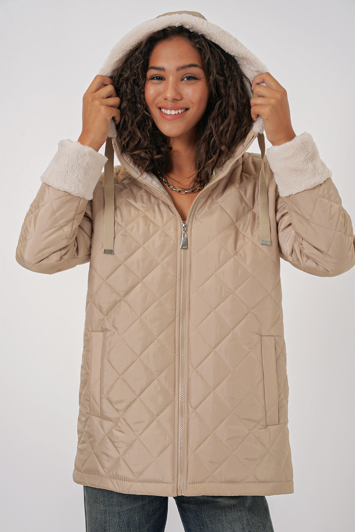 Ürün Içerigi% 100 PolyesterÜrün özellikleriKürk Detayli Kapüsonlu Kapitone MontIçi Astarli Sisme MontModel BilgileriBedeni : 38Ürün Boyu: 73 cmKol Boyu: 55 cmManken Ölçüsü : Boy:176 Gögüs:90 Bel:63 Basen:94Genel Yikama ve Kullanma Talimatlari• El isi ve boncuklu ürünler hassas programda tersten yikanmalidir• Baskili ürünler zamanla dökülebilir• Yikamada ürünü bozmamak için 30 C'yi asmayiniz• Ürünü yikarken yikama talimatina uygun olarak yikayiniz• Renkli ürünlerde uygun deterjan kullaniniz.
