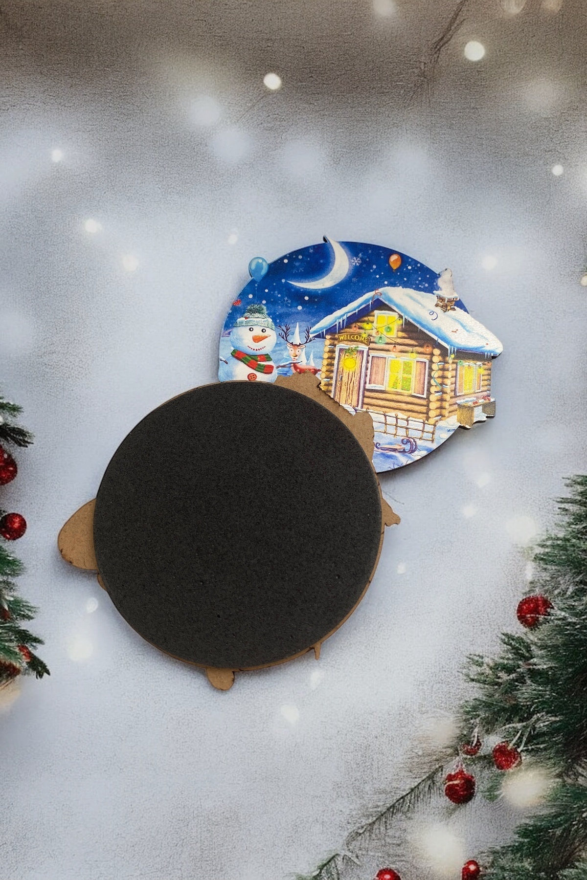 2 Adet Ahşap Bardak Altlığı- Yılbaşı Teması