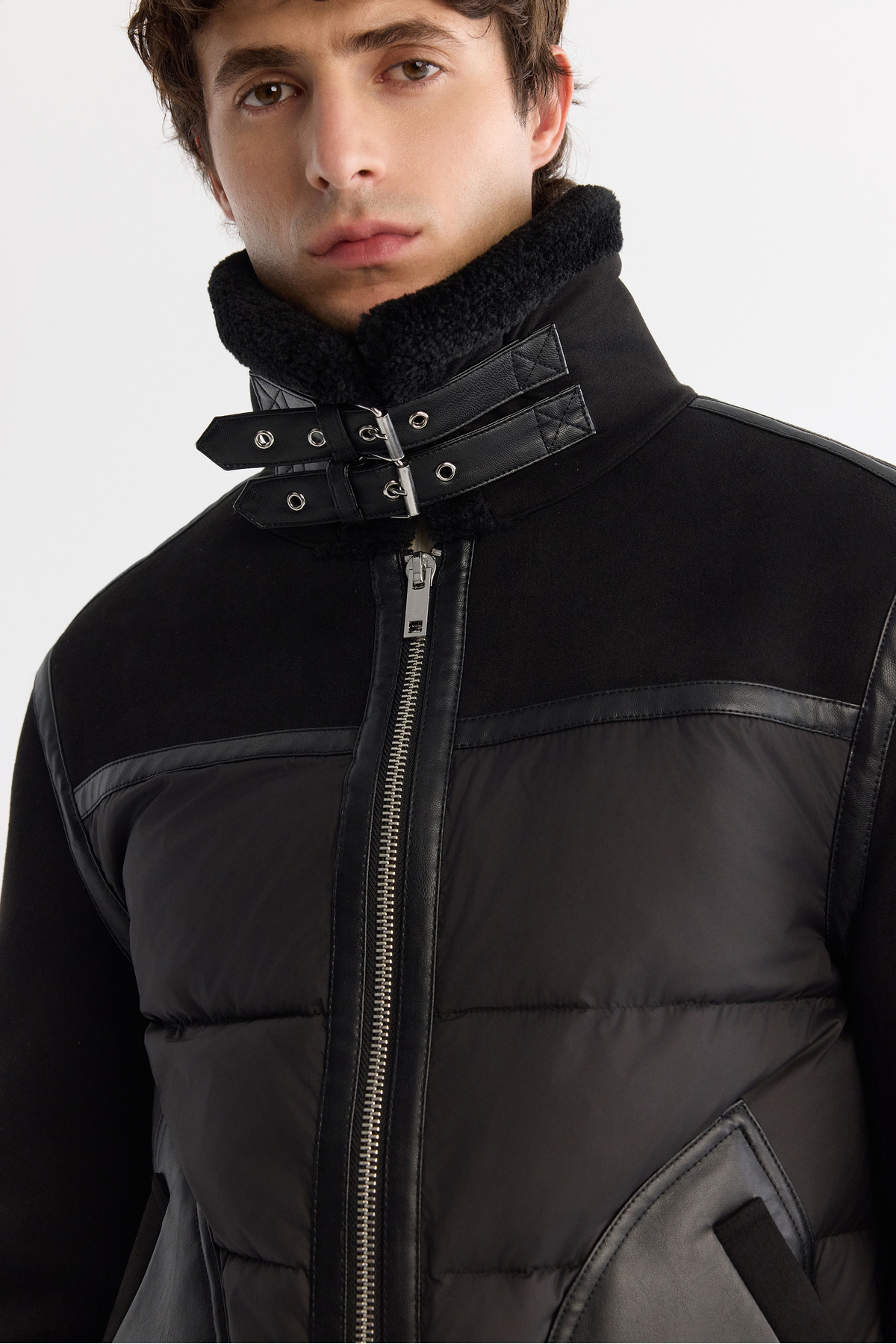 Yakası kol ve etek ucu kürklü, Kısa, Deri görünümlü, Önden fermuar kapama, Yakası çift kemer kapama, Yandan çıtçıtlı cep, Kolda branding detaylı, Comfort Fit Napa Mont
