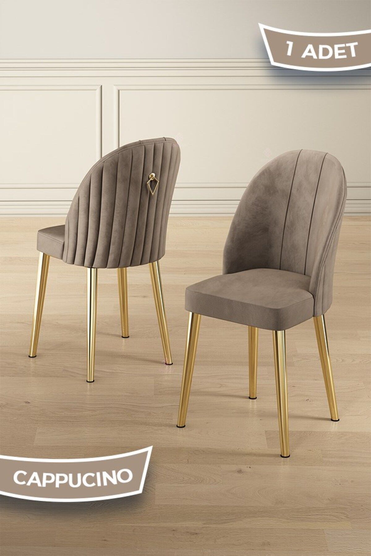 Mara Serisi 1 Adet Gri Mutfak Sandalyesi Gold Kaplama Metal Ayak 1. Sınıf Babyface Kumaş
