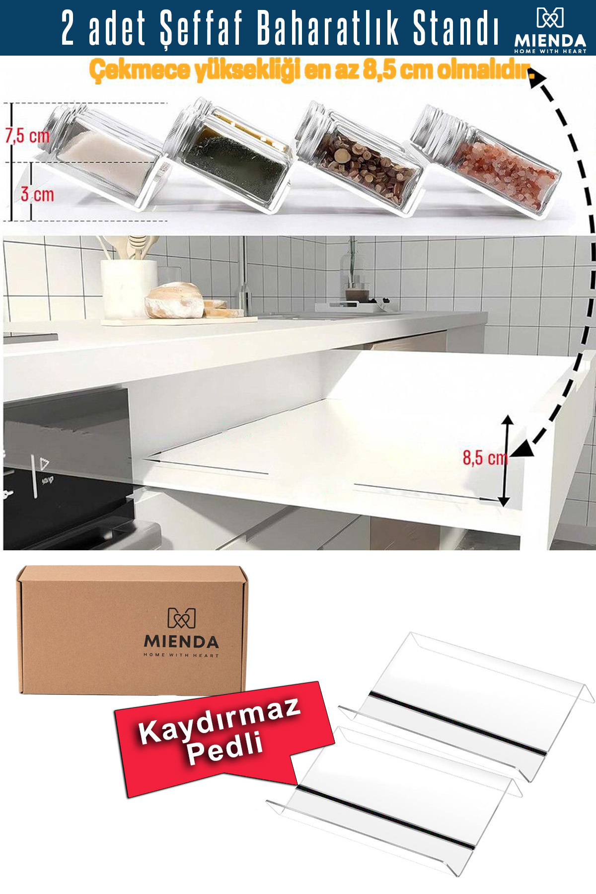 İki adet şeffaf baharatlık standı, mutfak düzeninizi kolayca organize etmenize yardımcı olur.