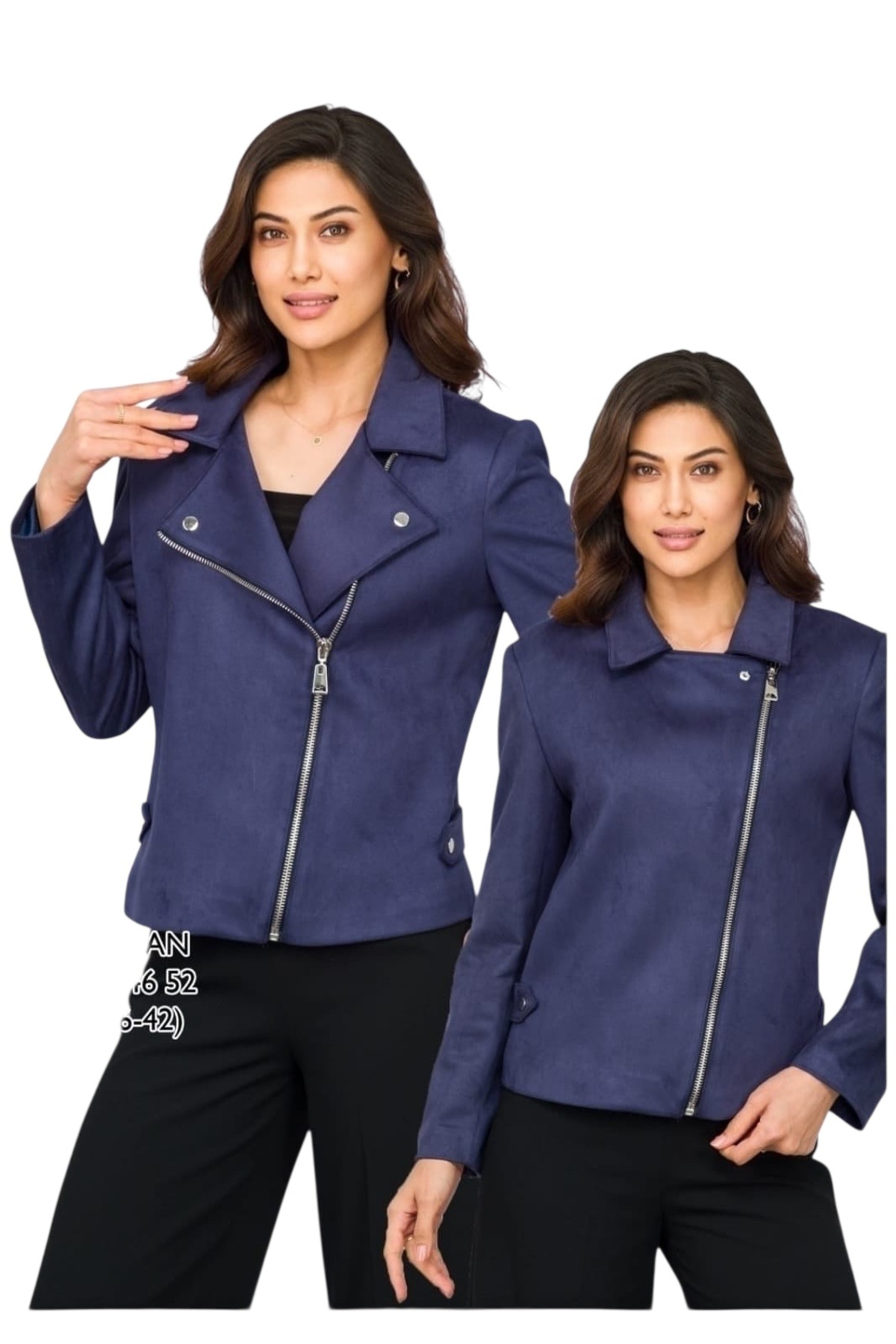 Yakasında Ve Kemeri Düğmeli ,Kruvaze Yaka Astarlı Fermuarlı, Kısa Süet Ceket